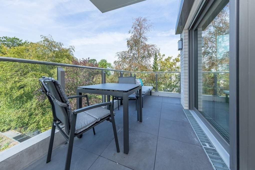Ein möblierter Südbalkon mit schönem Blick ins Grüne, Nachmittags- und Abendsonne, großzügige Fenster, vollkeramischer Fußbodenbelag im gemütlichen Holzdekor mit Fußbodenheizung sorgen für ein gemütliches Ambiente.