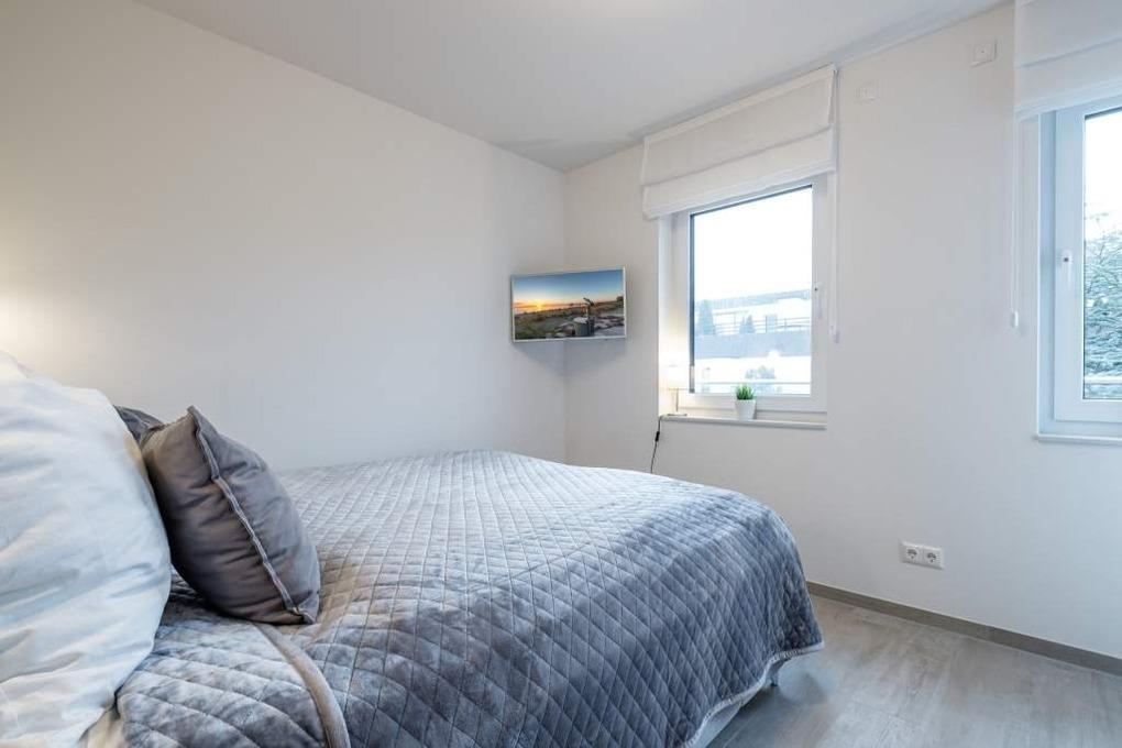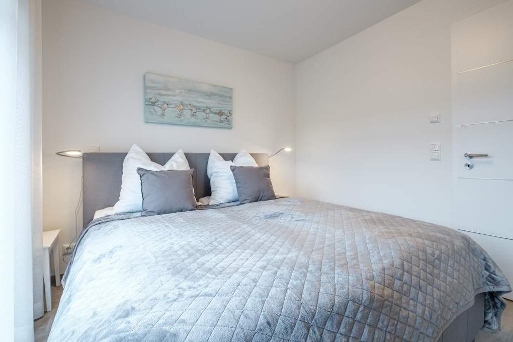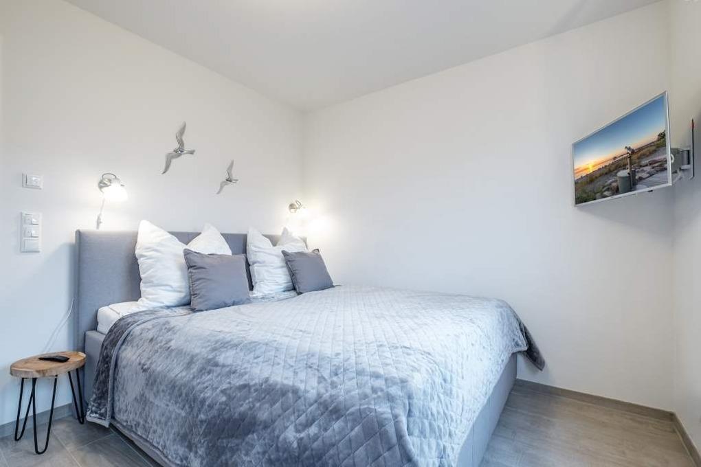 Das Schlafzimmer II ist ebenfalls mit einem Doppelbett (180x200cm, 2 einzelne Matratzen) und einem Einbauschrank eingerichtet. In beiden Schlafräumen befinden sich ein Flatscreen-TV einschl. Smart-TV.