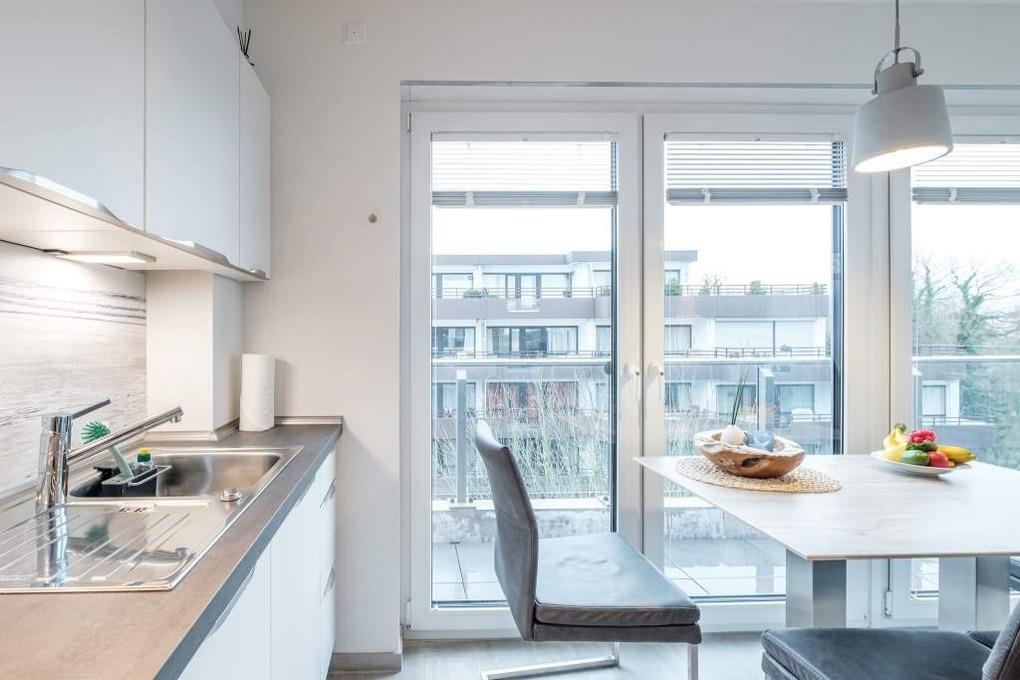 Die Essecke verbindet den Wohnbereich mit der offenen Einbauküche. Diese ist mit Ceranfeld, Backofen-/Mikrowellenkombination und Geschirrspüler ausgestattet.[nbsp][nbsp]