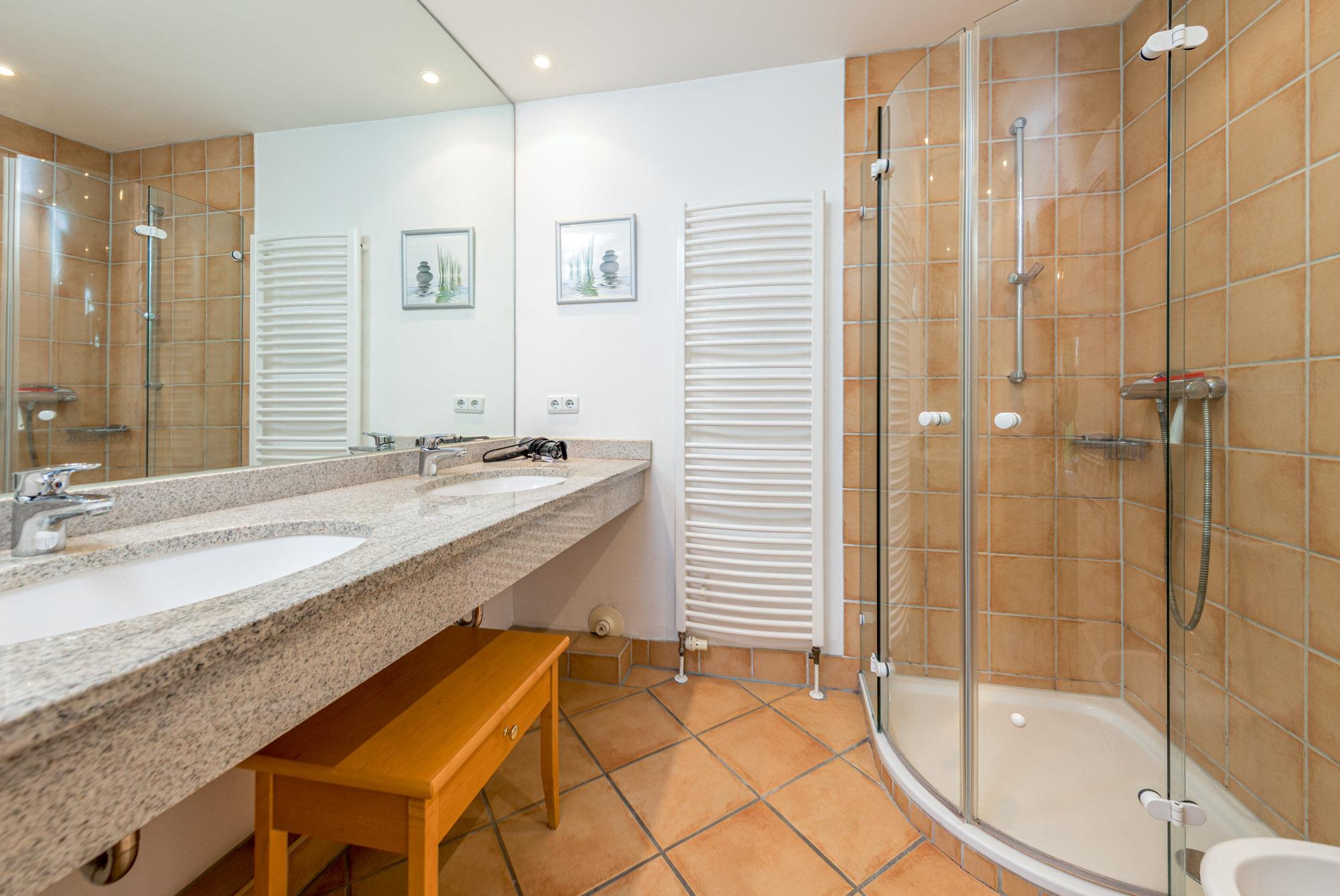 In der Scharbeutz Ferienwohnung Nr. 1 erwartet Sie ein kombiniertes Wohn-/Schlafzimmer mit Doppelbett (180x200 cm), einer Schlafcouch für die 3. Person (Liegefläche 140x200cm), Flatscreen-TV und Essecke. Die kleine Pantry Küche ist in den Wohnraum integriert und mit 2-Platten-Ceranfeld, Geschirrspüler und Mikrowelle ausgestattet. Das Badezimmer der Ferienwohnung Scharbeutz verfügt über eine Dusche, einen Doppelwaschtisch aus Granit, sowie ein Bidet. Um Ihnen einen erholsamen Schlaf zu garantieren, lassen sich die Schlafräume der Ferienwohnung verdunkeln.