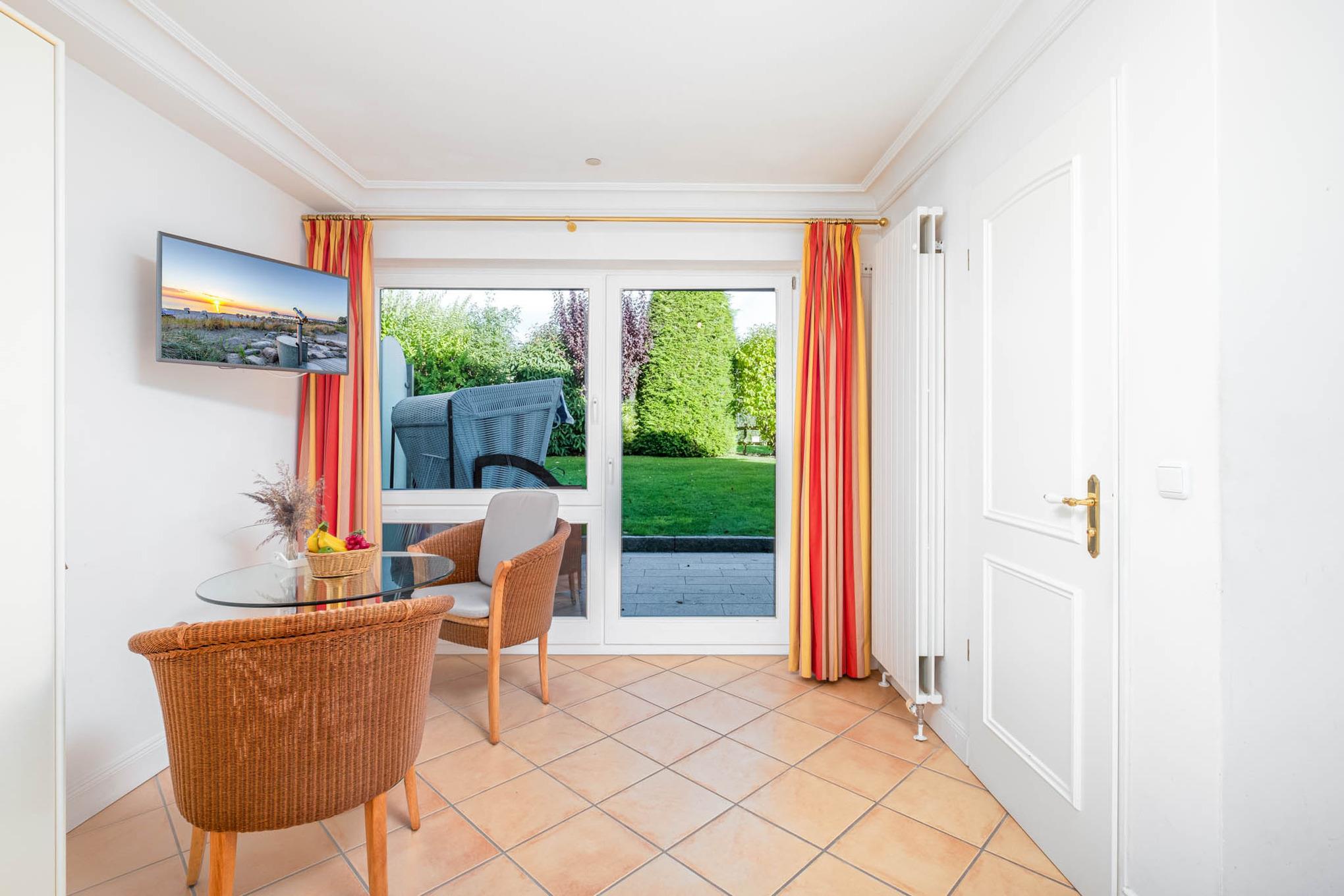 Die Scharbeutz Ferienwohnung Nr. 2 im Gästehaus Nina ist für 2 Personen ausgelegt. Sie liegt im Untergeschoss mit möblierter Nord-Ost-Terrasse. Das Haus Nina ist hanglagig gebaut, d.h. Sie müssen zunächst einige Treppenstufen runter gehen, um zur Wohnung zu kommen.