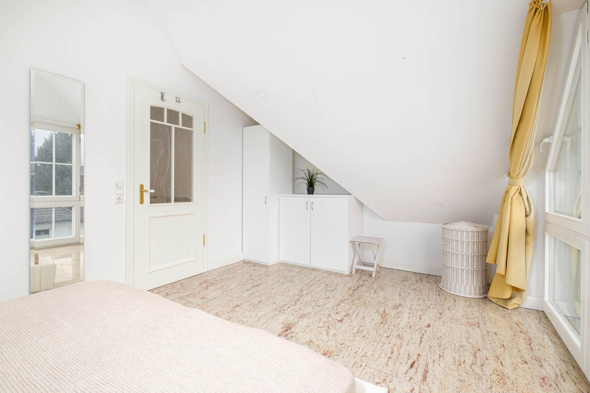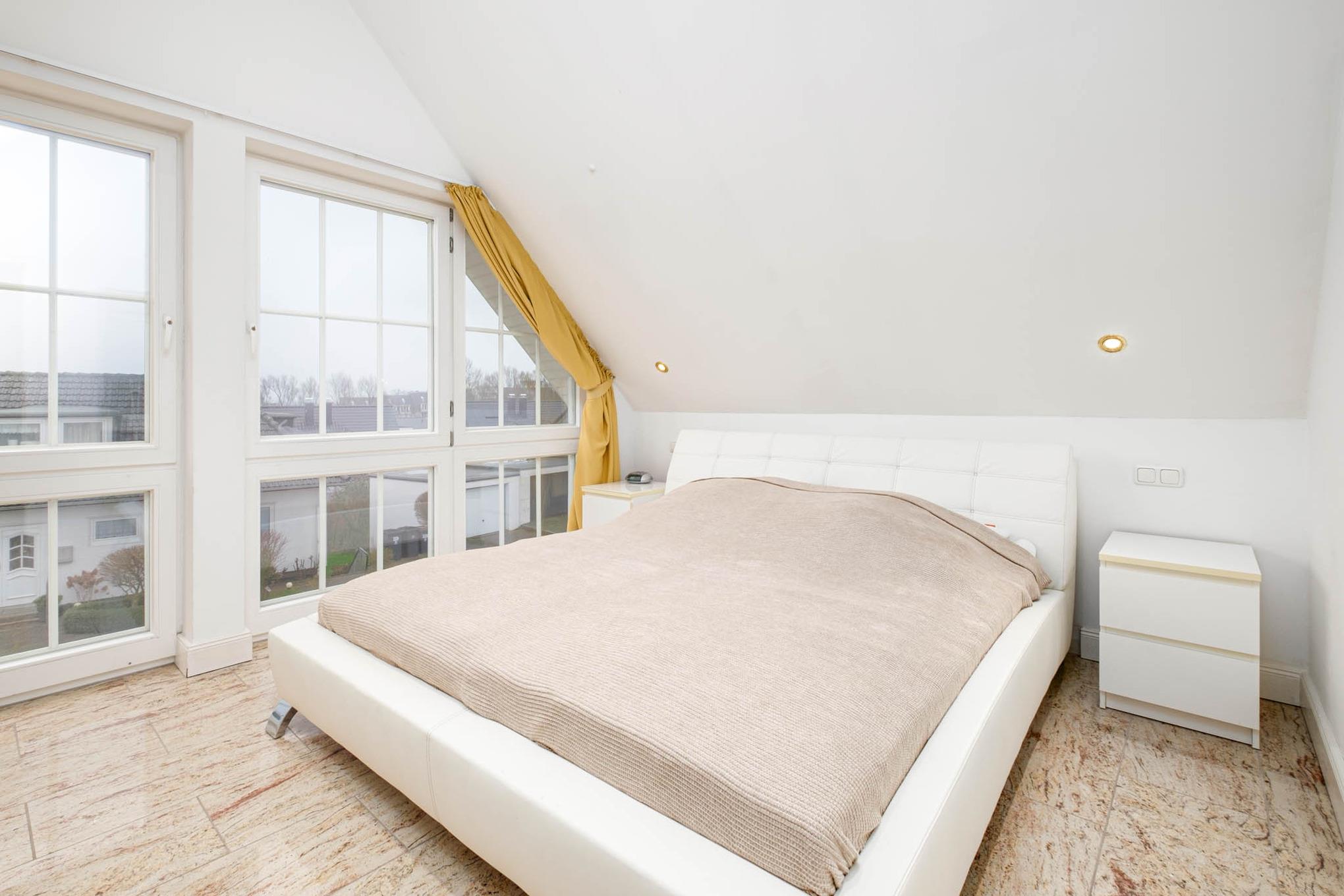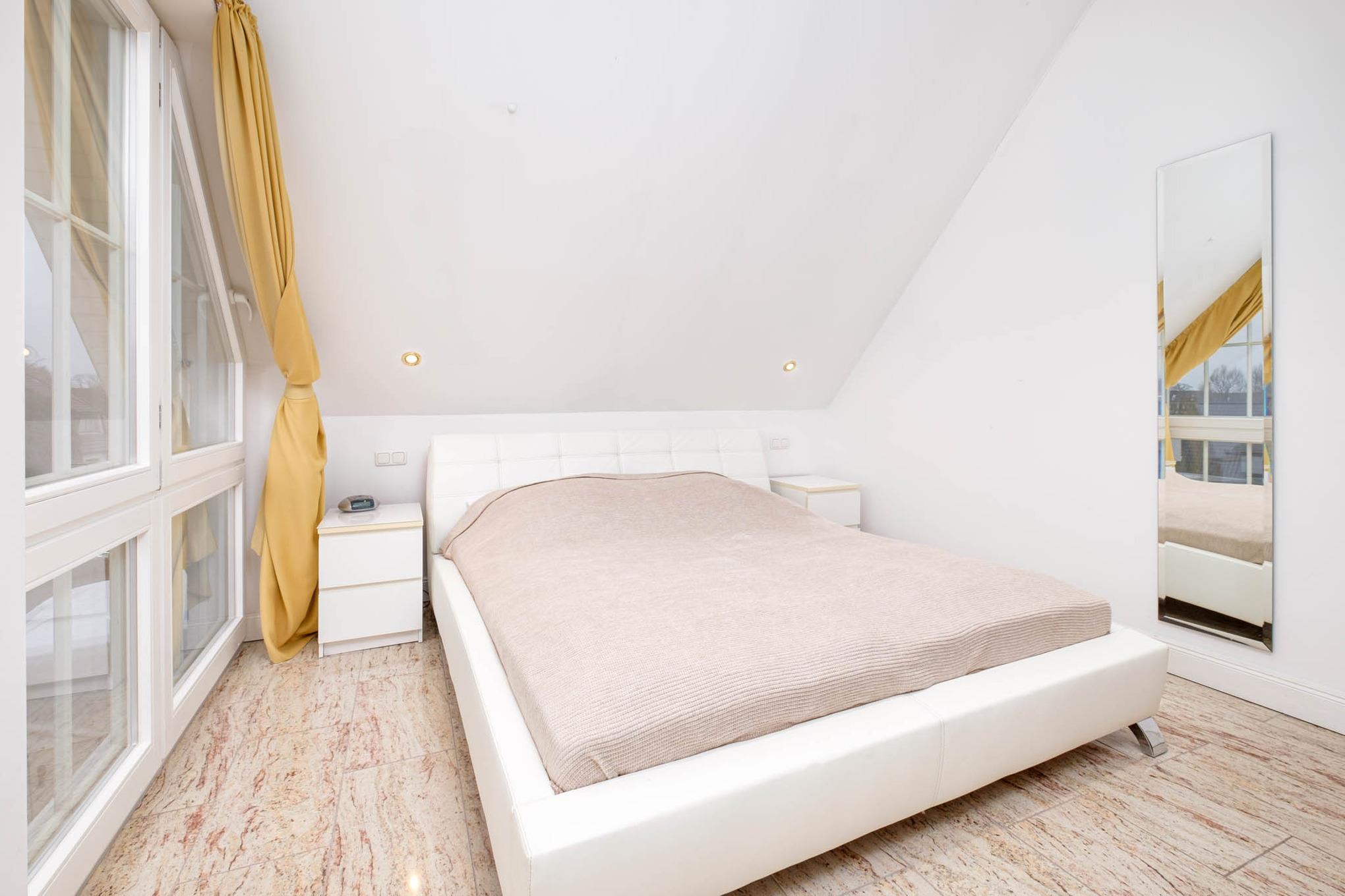 In der Unterkunft befinden sich 2 separate Schlafzimmer, welche beide im Obergeschoss des Hauses liegen. Das Schlafzimmer I ist mit einem Doppelbett (180x200 cm), Flatscreen-TV und Kleiderschrank ausgestattet. Zudem haben Sie von diesem Schlafzimmer Zugang zur überdachten Loggia. Im Schlafzimmer II finden Sie ein weiteres Doppelbett (180 x 200 cm), sowie einen Kleiderschrank vor. Beide Schlafzimmer lassen sich mittels Verdunkelungsvorhängen abdunkeln.