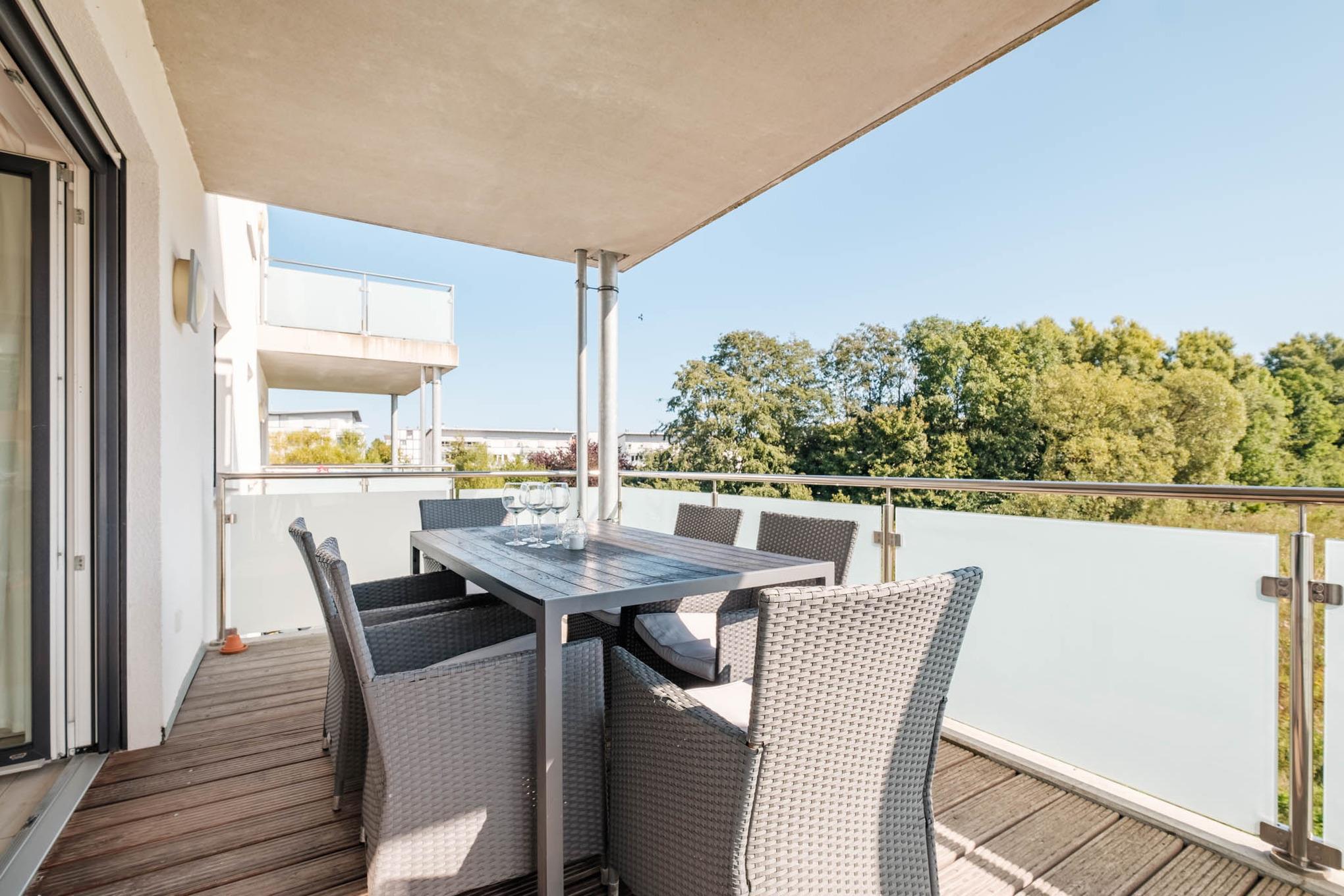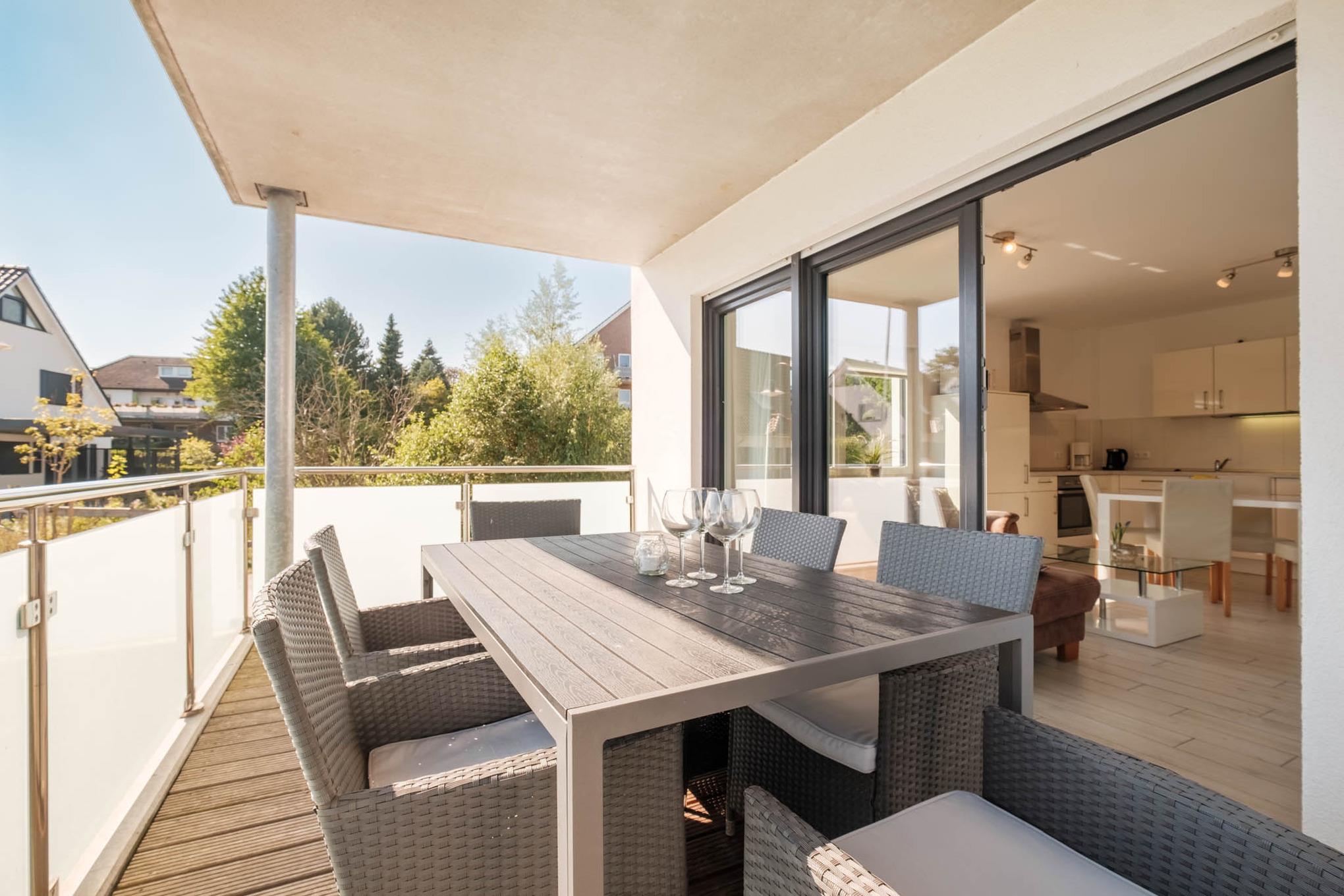 Auch dieses Appartement verfügt über 2 komplette Badezimmer. Beide Bäder besitzen eine eigene Dusche. Der möblierte und große Balkon in Süd-Ost-Lage rundet dieses wunderschöne Urlaubsdomizil im Herzen von Scharbeutz ab.