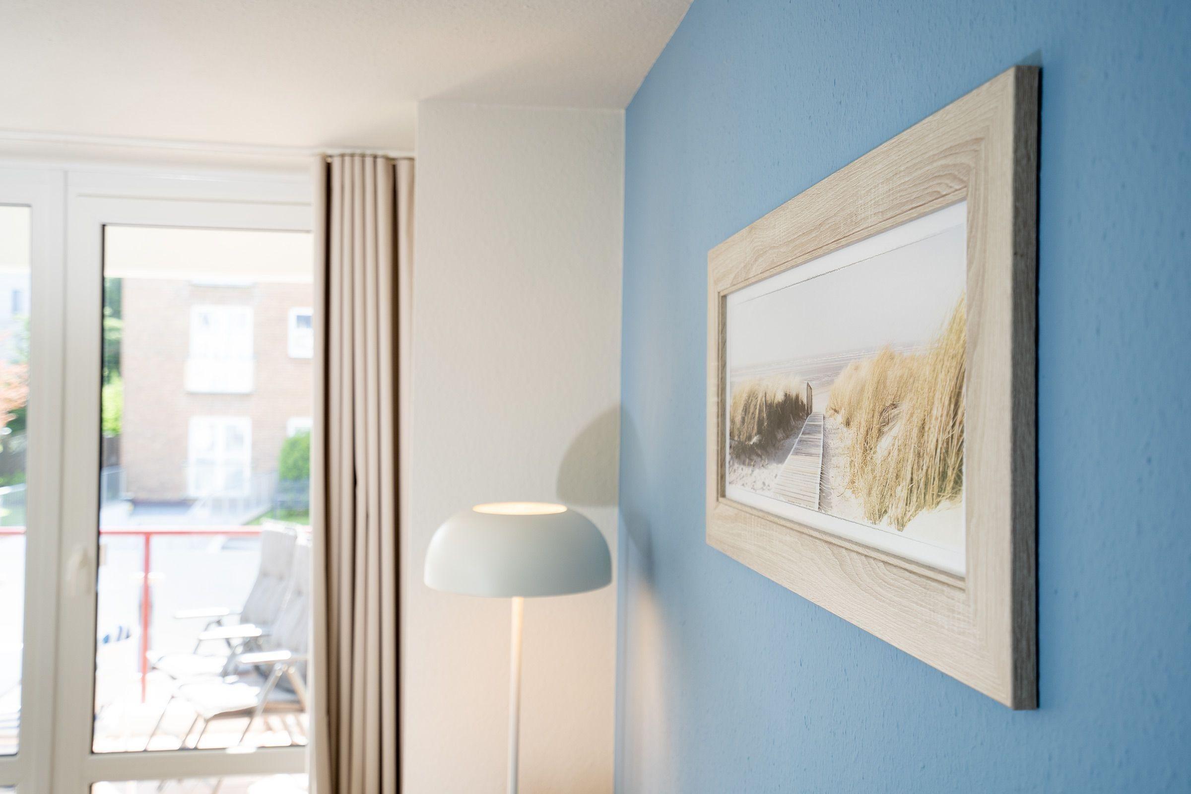 Die Ferienwohnung im "WITTHUS", Hansastraße 8, Wohnung 06, zeichnet sich durch eine ideale Lage in der Nähe der Promenade, des Strandes sowie zahlreicher Cafés und Restaurants aus. Das ca. 54 m² große 2-Zimmer-Komfort-Appartement bietet Platz für bis zu zwei Erwachsene und zwei Kinder. Im 1. OG gelegen, ist es mit hellem Laminat ausgestattet und verfügt über eine Diele, einen Wohn-/Essraum mit Schlaf-Ledersofa, TV und Radio sowie einer separaten Einbauküche mit Geschirrspüler und Mikrowelle/Grill. Das Schlafzimmer hat ein Doppelbett mit zwei einzelnen Matratzen und einen Kleiderschrank. Das Duschbad/WC rundet das Angebot ab. WLAN ist vorhanden, jedoch ohne Gewährleistung bei technischen Problemen. Die Nutzung eines PKW-Stellplatzes in der Tiefgarage ist inklusive, dabei sind jedoch bestimmte Fahrzeugdimensionen und -arten zu beachten.