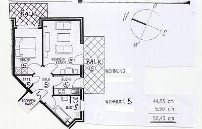 50 m² großes liebevoll ausgestattetes 2-Zimmer-Komfort-Appartement im 1. OG mit 2 Balkonen. 1. Balkon mit Südausrichtung vom Wohnzimmer aus und 2. Balkon mit Ostausrichtung vom Schlafzimmer aus. Der sonnige, großzügige Wohnraum ist mit einem Vinylboden ausgestattet und verfügt über ein Sofa mit Schlaf-Funktion (2,00 m x,1,60m) für 2 Personen geeignet) 1 Sessel & Couchtisch und einer Essecke mit Stühlen, einem LCD-Fernseher und einer Stereoanlage mit CD Player. Das Appartement ist mit einem High-Speed-WLAN ausgestattet.