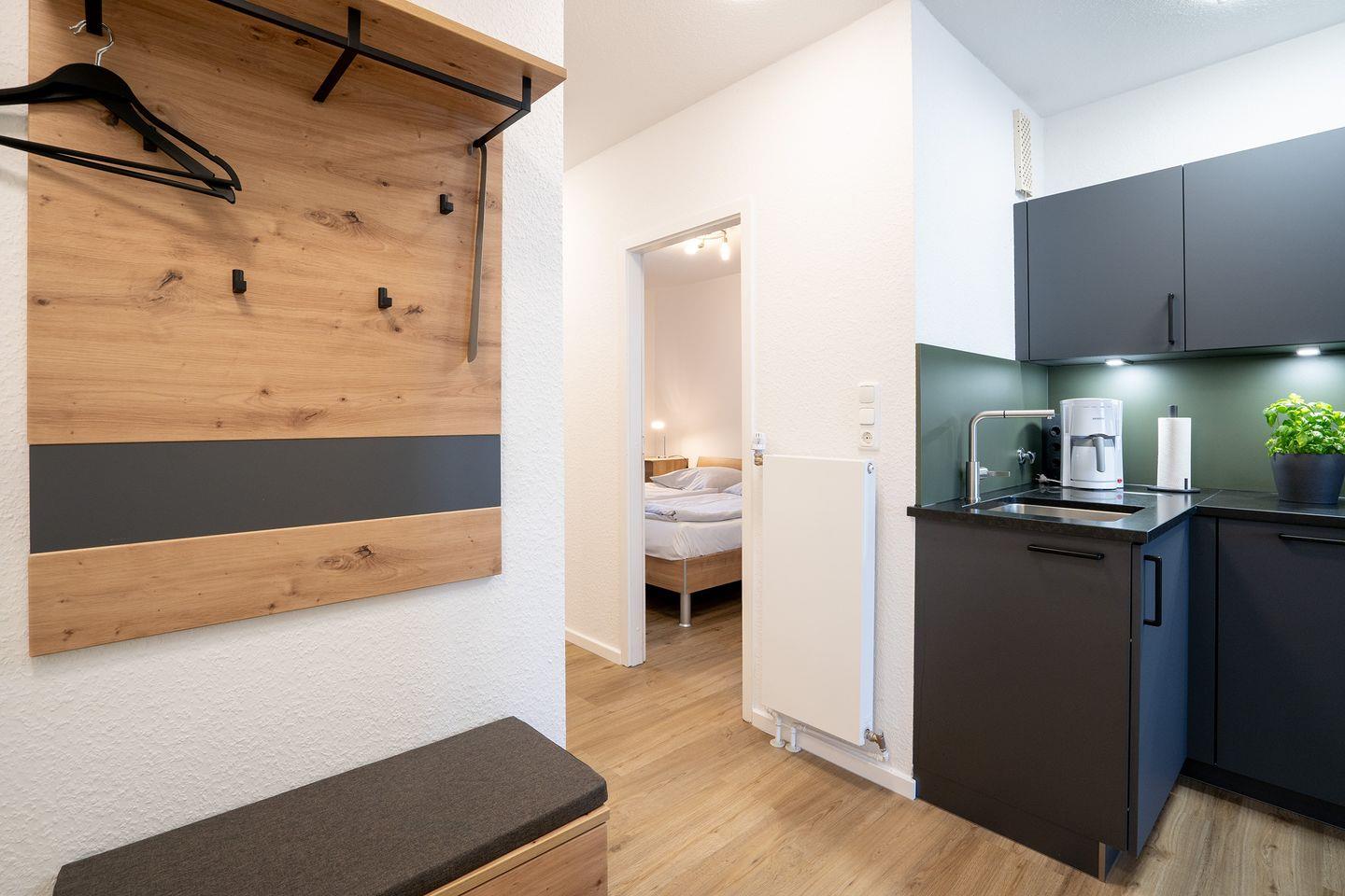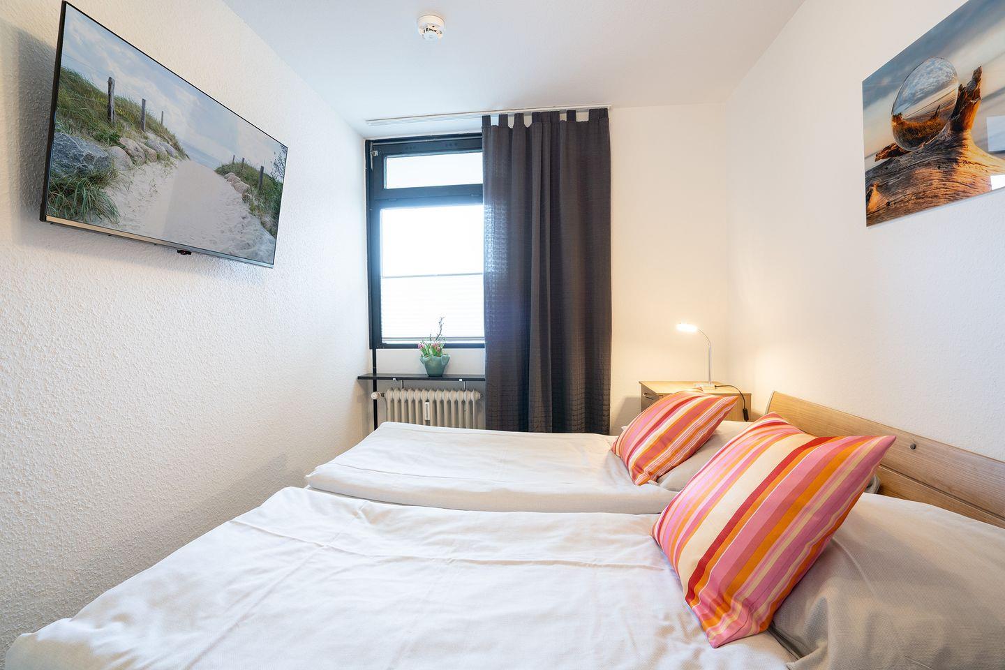 Das ca. 60qm große 3-Zimmer -Seeblick-Komfort- Appartement befindet sich im 2.Wohngeschoss / Lift vorhanden und verfügt über einen großen Seeblick-Balkon, einen großzügigen Wohnraum mit Polstergarnitur, welche auch zur Schlafstelle für zwei Personen umwandelbar ist, einen Couchtisch und LCD-TV, integrierte moderne Einbauküche mit Geschirrspüler, 4-Platten-Herd, Spüle, etc. Zwei separate Schlafräume. Eines mit zwei Einzelbetten 90x190cm sowie einmal mit einem Doppelbett 170/180 m Breite mit Einzelmatratzen. Beide Zimmer haben ein Fenster. Der Eingangsbereich mit Garderobe, modernes Duschbad mit WC. In diesem Appartement sind Rauchen und Tierhaltung nicht erlaubt. Wir bitten um entsprechende Beachtung! Der PKW- Stellplatznutzung ist inklusive. Waschmaschine und Trockner sind im Haus gegen Gebühr nutzbar.