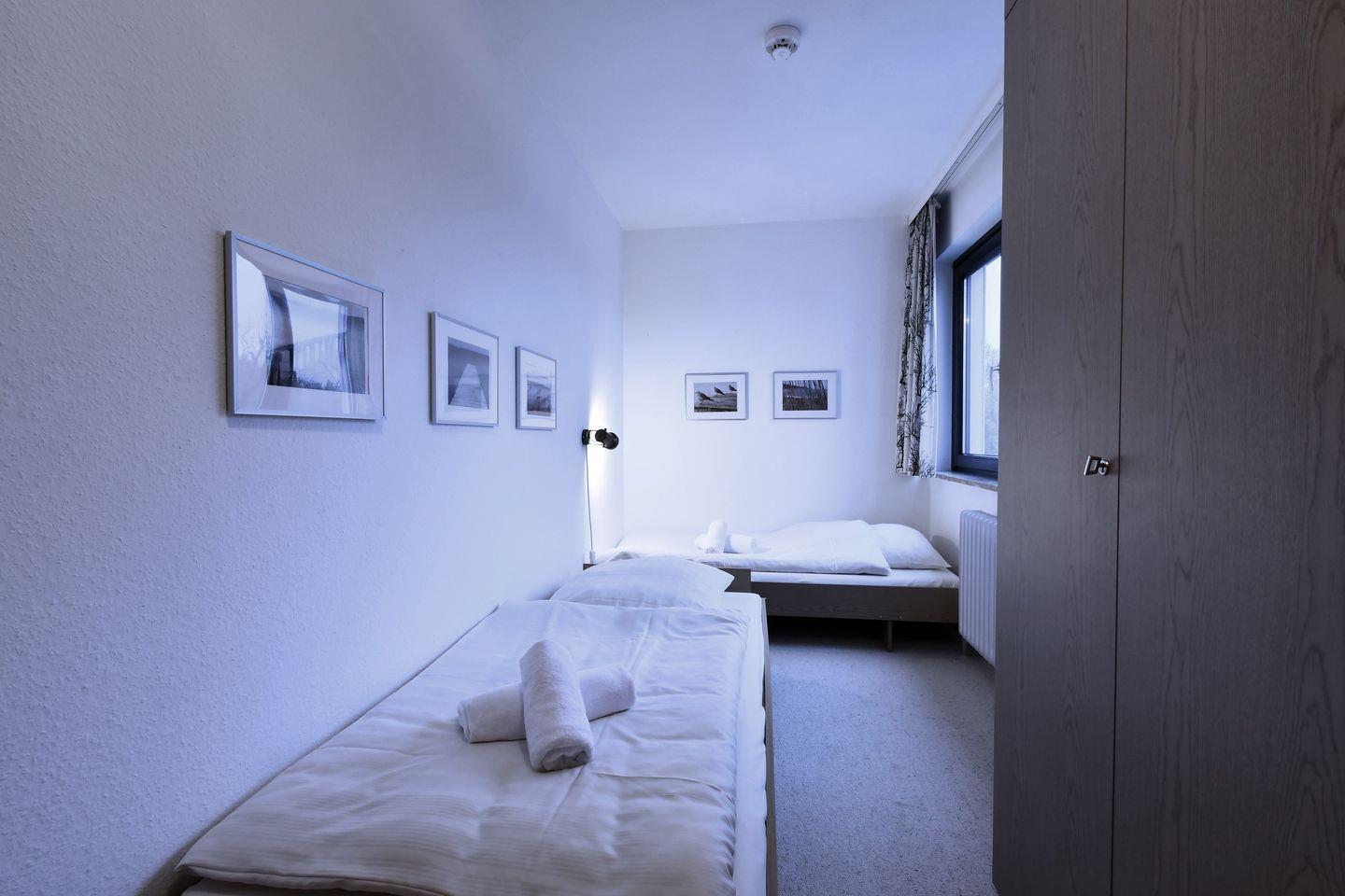 Im Schlafzimmer finden sich zwei Einzelbetten sowie der Kleiderschrank für Ihre Garderobe.