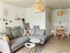 Die Wohnung "Glück in Sicht" befindet sich im Hochparterre und verteilt sich auf einen Wohnbereich mit einer Schlafnische. Doppelbett mit zwei Einzelmatratzen. Schon beim Betreten der Wohnung fühlt man sich gleich wie Zuhause. Das Wohnzimmer ist mit einer gemütlichen Schlafcouch für Kinder ausgestattet. Durch die große Fensterfront erhält das Wohnzimmer viel Helligkeit. Von hieraus haben Sie den direkten Ausgang auf den Balkon, auf dem vom Vormittag bis in den Abend hinein die Sonne scheint.