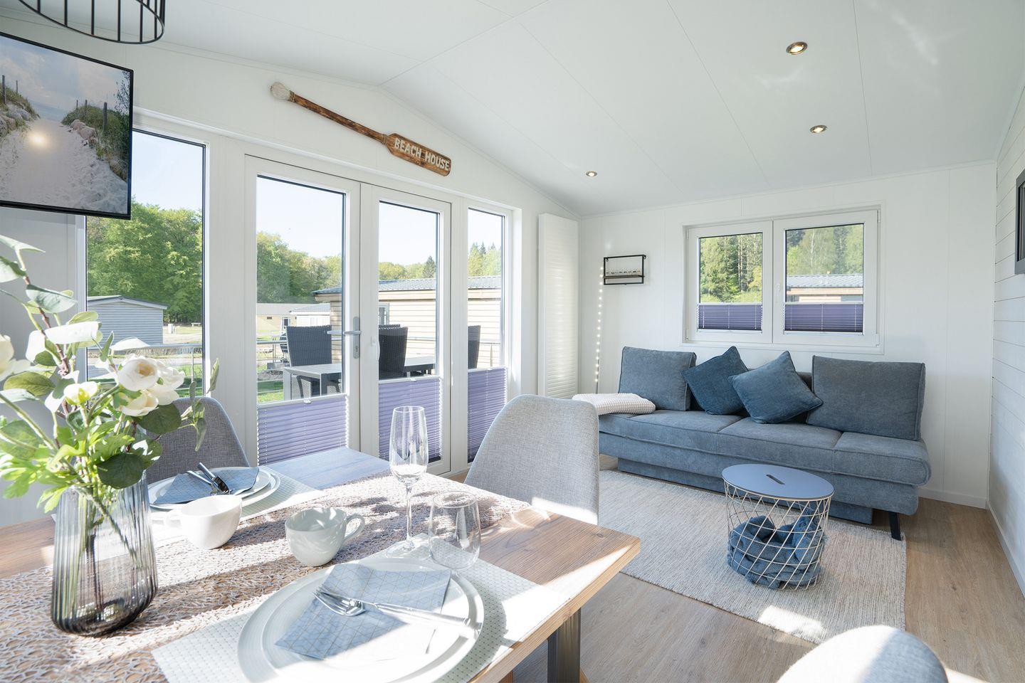 in unserem modernen 2022 erbauten 3-Zimmer-Ferienhaus mit einer Wohnfläche von 40 qm und einer teilweise überdachten großen Terrasse mit 15 qm.