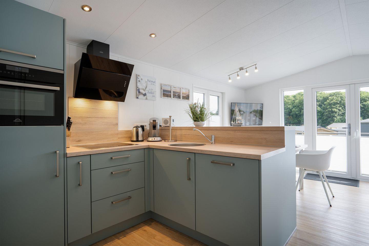 Die Küche bietet eine sehr umfangreiche Ausstattung. Hier können Sie auch aufwendigere Gerichte zaubern. Neben einem Cerankochfeld mit 4 Herdplatten, einem Kombigerät mit Backofen- und Mikrowellenfunktion, einem großen Kühlschrank samt Eisfach über eine Senseo-Kaffeemaschine, Toaster und Wasserkocher, bis hin zum Mixer und Kuchenform ist alles vorhanden. Geschirr, Besteck und Küchenhelfer gibt es im Überfluss.