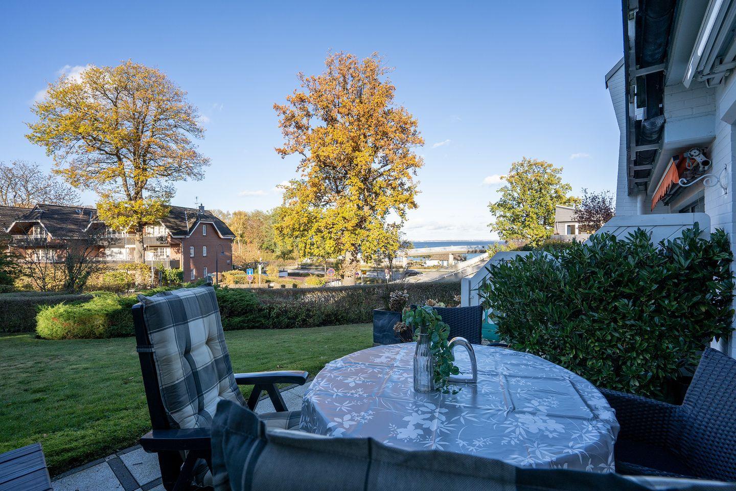 Es handelt sich um ein liebevoll eingerichtetes ca. 45 qm Appartement für max. 3 Personen. Ein gemütlich eingerichtetes Wohnzimmer mit Schlafcouch, incl. Essbereich und bodentiefen Fenstern sorgen für eine helle und freundliche Atmosphäre. Für die Unterhaltung steht Ihnen ein Flatscreen-TV und ein Internet-Radio zur Verfügung. Ein kostenloser WLAN Zugang ist selbstverständlich vorhanden. Vom Wohnbereich aus erreicht man die möblierte Terrasse mit Markise und einem tollen Ostseeblick .