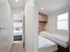 Schlafzimmer 2: Kleiderschrank, 2 Einzelbetten mit offenem Fußende (können zu einem Doppelbett zusammengestellt werden), Verdunkelungsmöglichkeit/Plissee