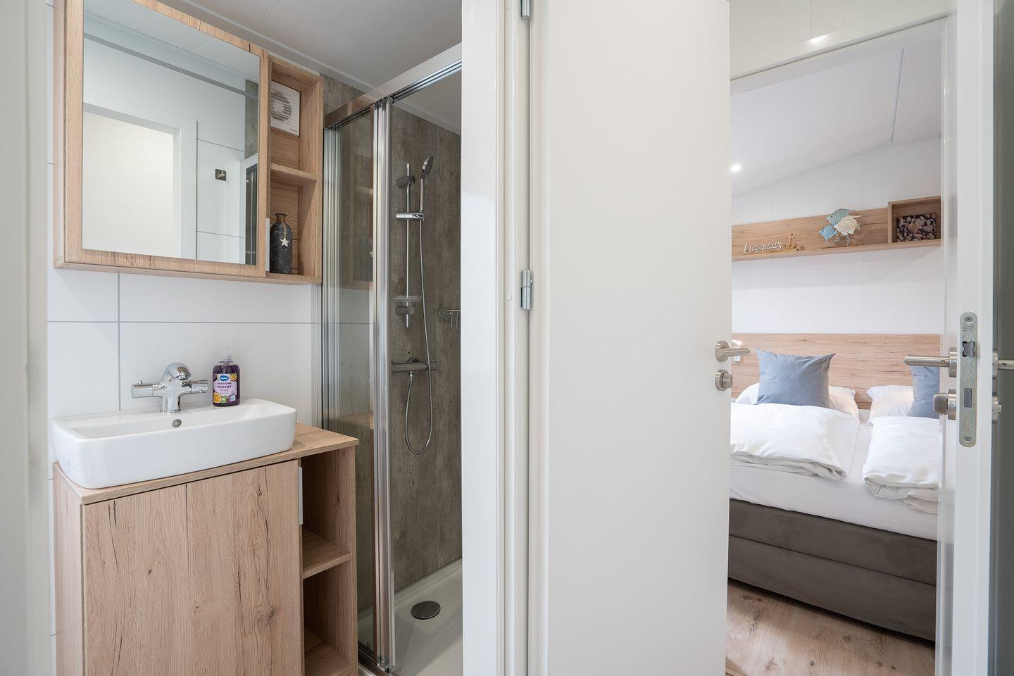 Das Badezimmer verfügt über eine moderne Dusche und eine Handtuchheizung. Im Elternschlafzimmer erwartet Sie ebenfalls ein großer Flachbildfernseher sowie ein himmlisches Doppelbett für pure Entspannung und Ruhe. Das zweite Schlafzimmer bietet zwei Einzelbetten, die auch zu einem Doppelbett zusammengestellt werden können.