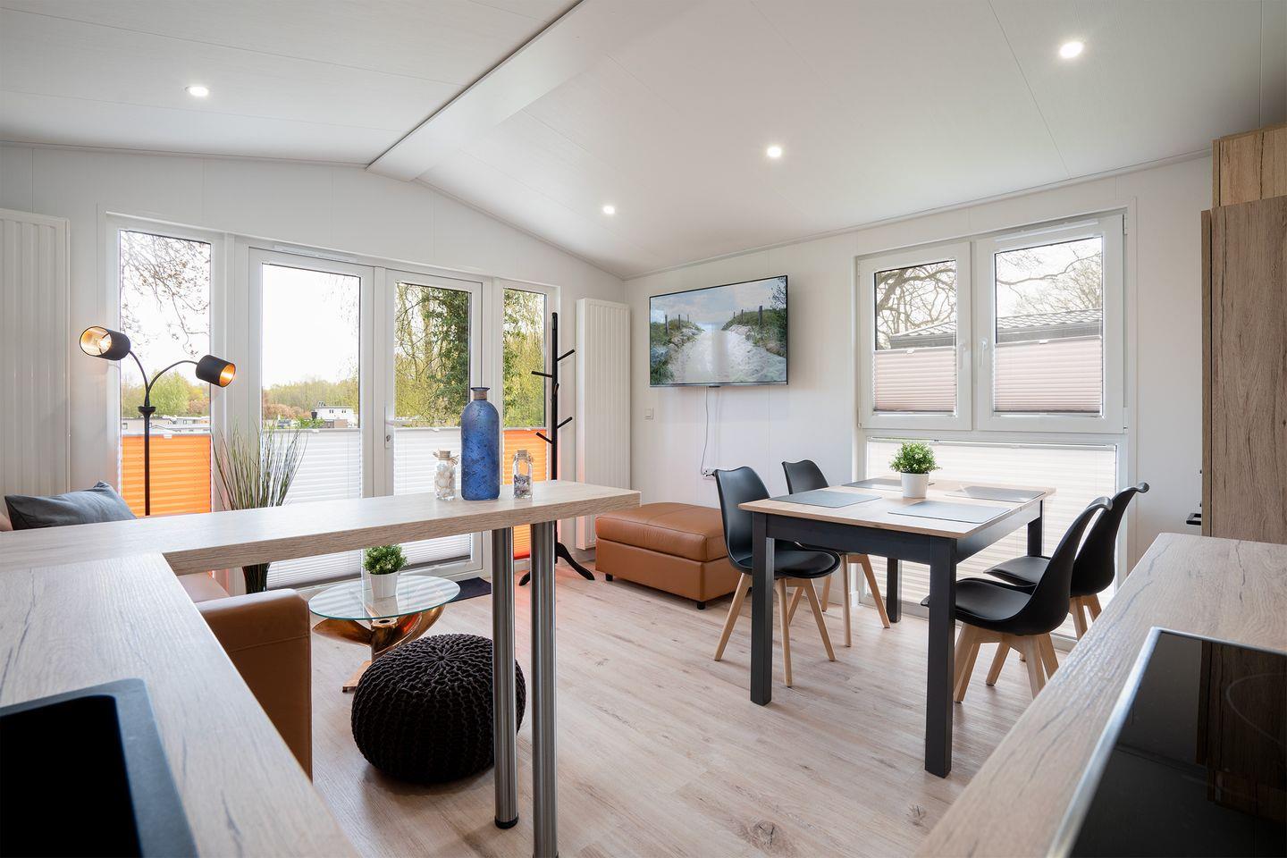 Unsere modernen Häuser bieten auf 40 m² Platz für bis zu 4 Personen. Sie sind ideal für einen entspannten Urlaub mit Freunden, der Familie oder auch für Veranstaltungen geeignet. Falls Sie mehr Platz benötigen, stehen Ihnen auch unsere 6 identisch ausgestatteten Nachbarhäuser zur Verfügung.
