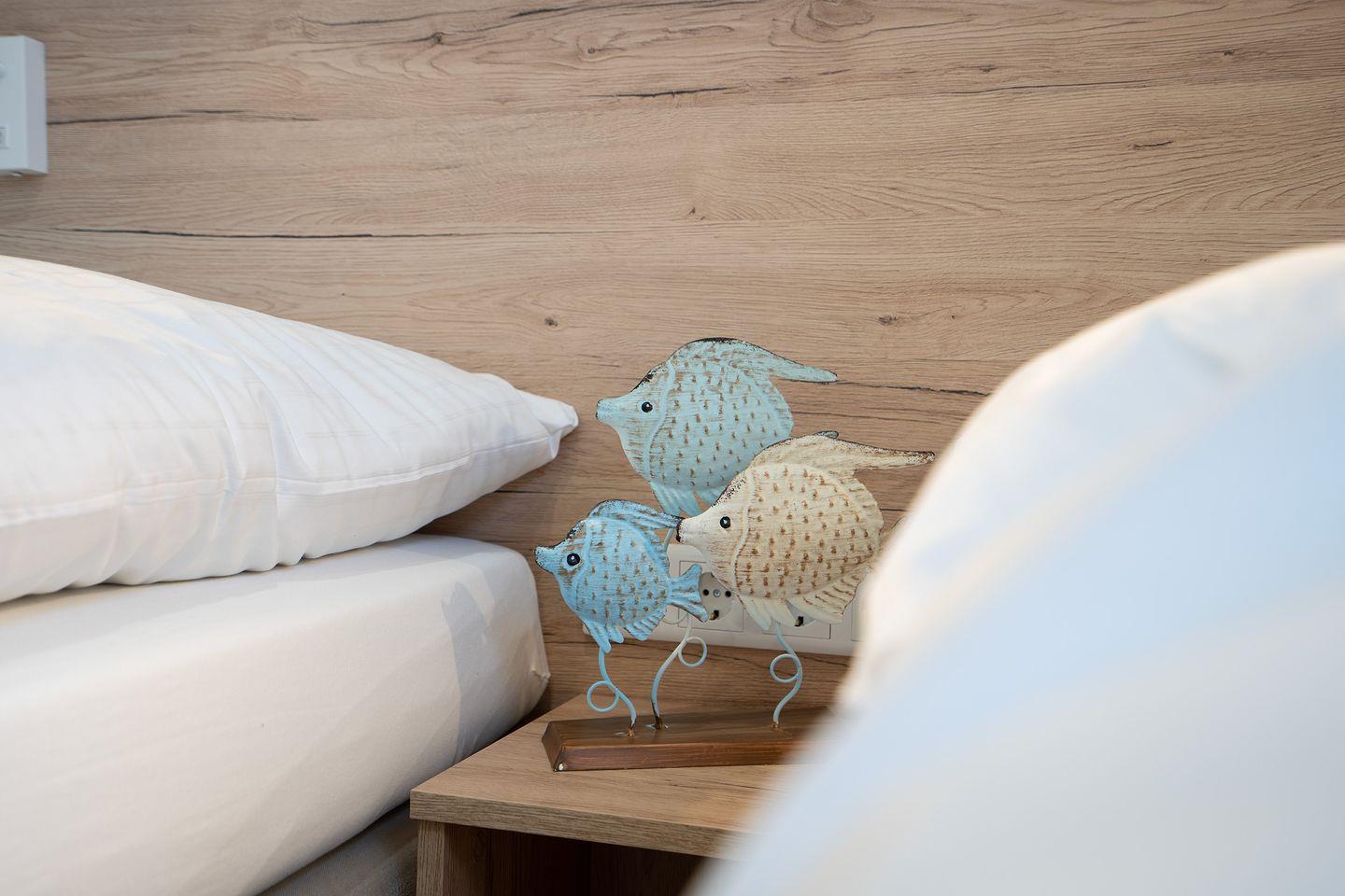 Das Badezimmer verfügt über eine moderne Dusche und eine Handtuchheizung. Im Elternschlafzimmer erwartet Sie ebenfalls ein großer Flachbildfernseher sowie ein himmlisches Doppelbett für pure Entspannung und Ruhe. Das zweite Schlafzimmer bietet zwei Einzelbetten, die auch zu einem Doppelbett zusammengestellt werden können.