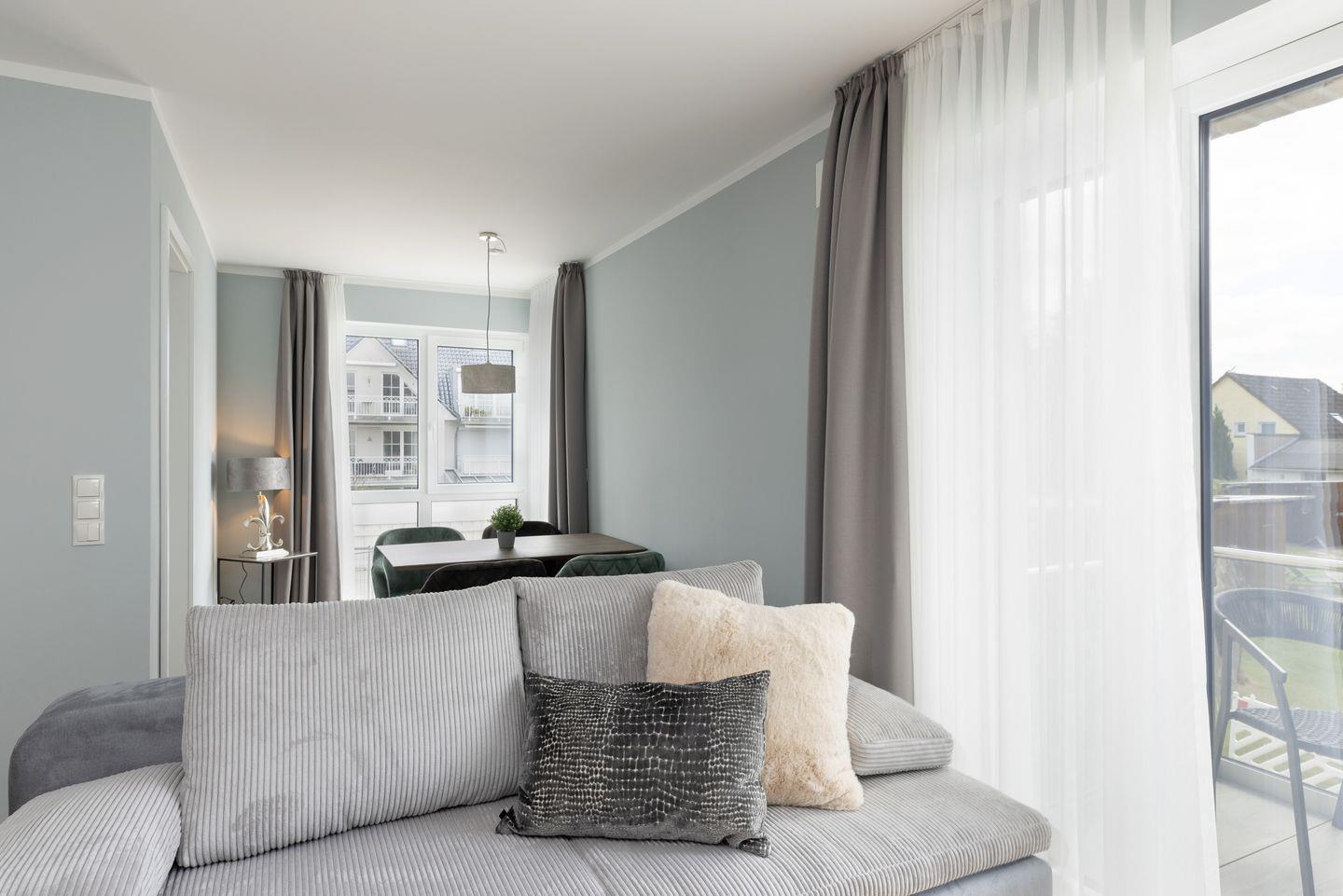 Erstklassige 2-Zimmer-Ferienwohnung für 4 Personen im Appartementhaus “Sturmfrei” mitten im Ostseebad Scharbeutz.