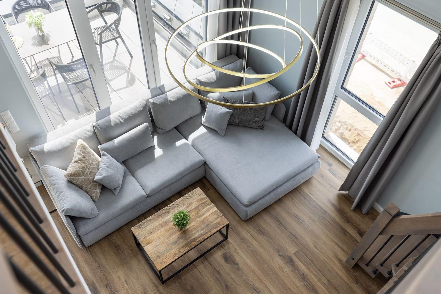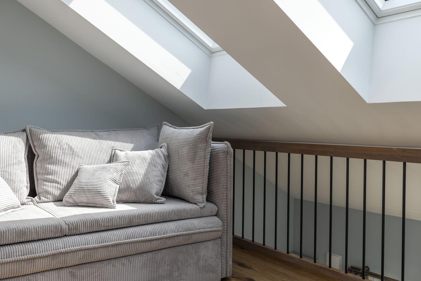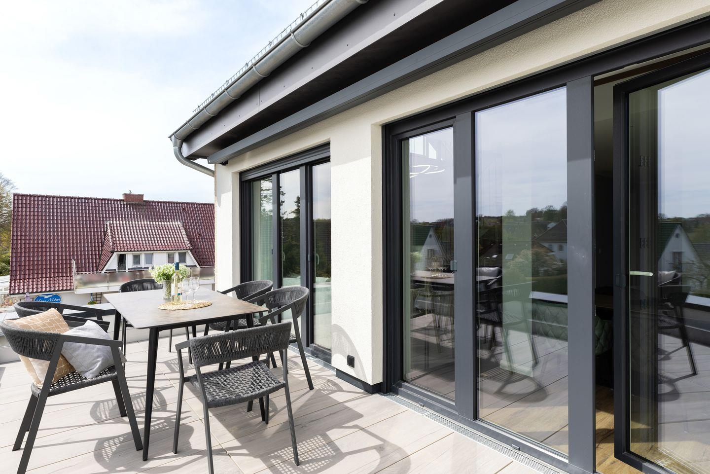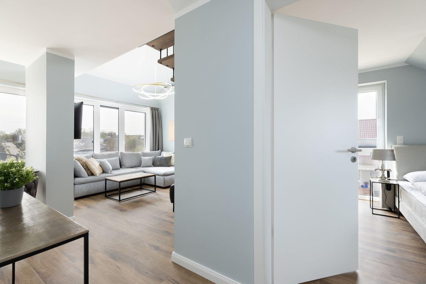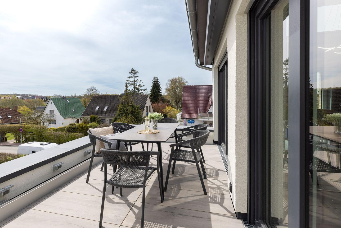 Lichtdurchflutete Galeriewohnung über zwei Etagen für bis zu 6 Personen unterm Dach des Appartementhauses “Sturmfrei” mitten im Ostseebad Scharbeutz.
