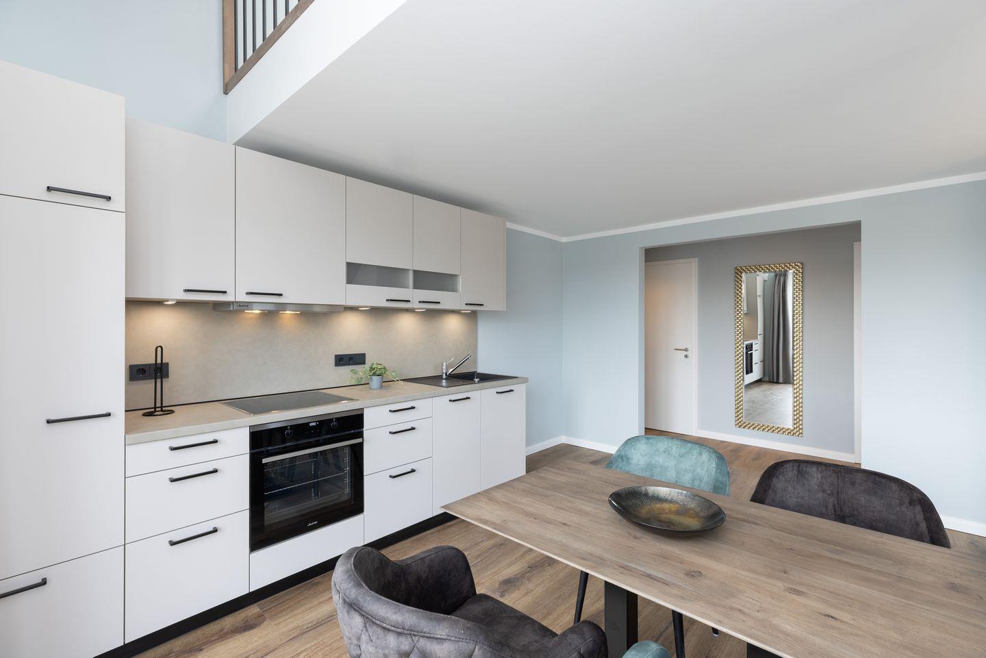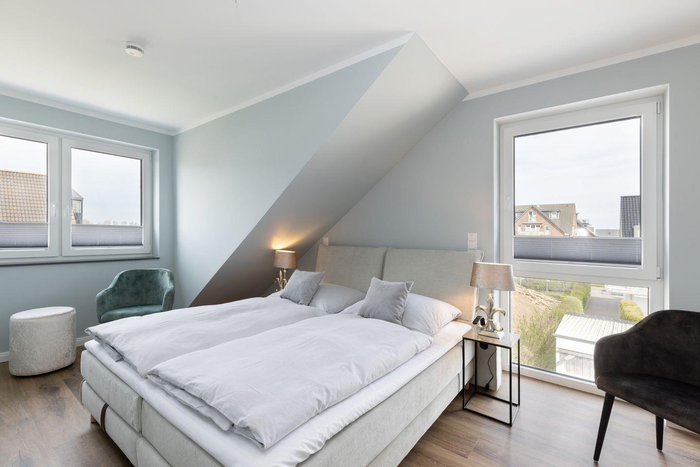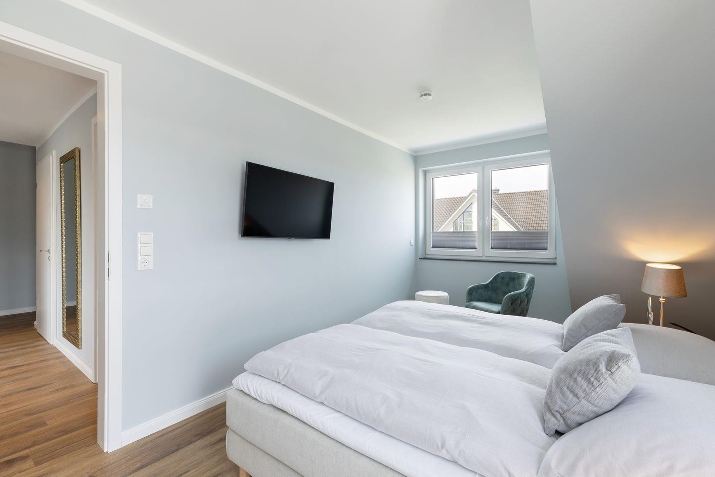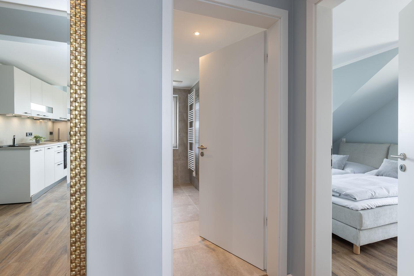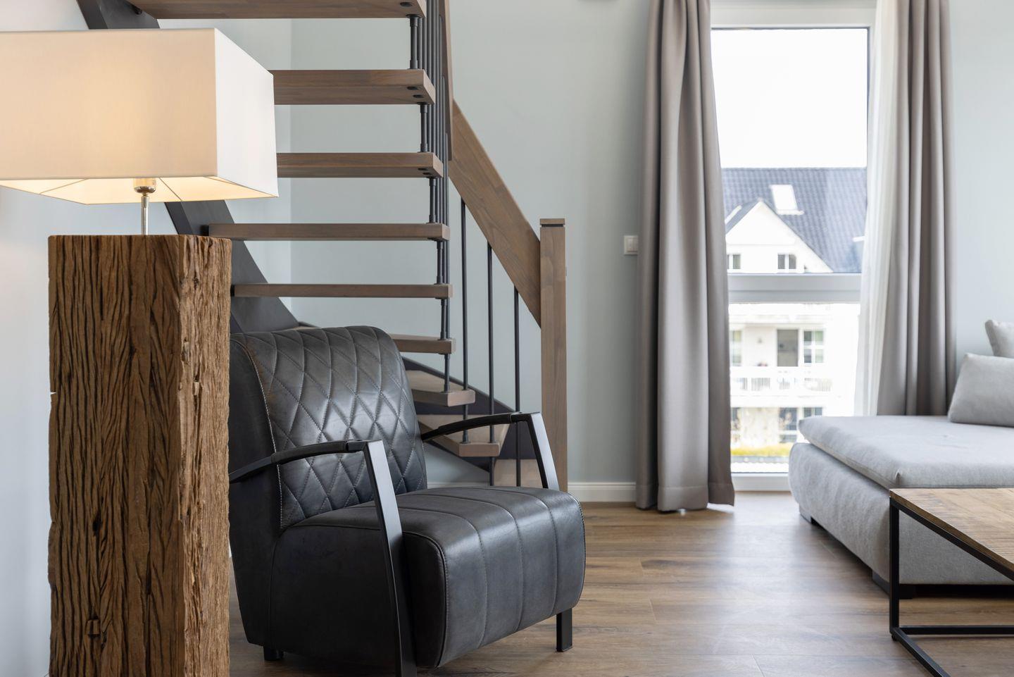 Lichtdurchflutete Galeriewohnung über zwei Etagen für bis zu 6 Personen unterm Dach des Appartementhauses “Sturmfrei” mitten im Ostseebad Scharbeutz.