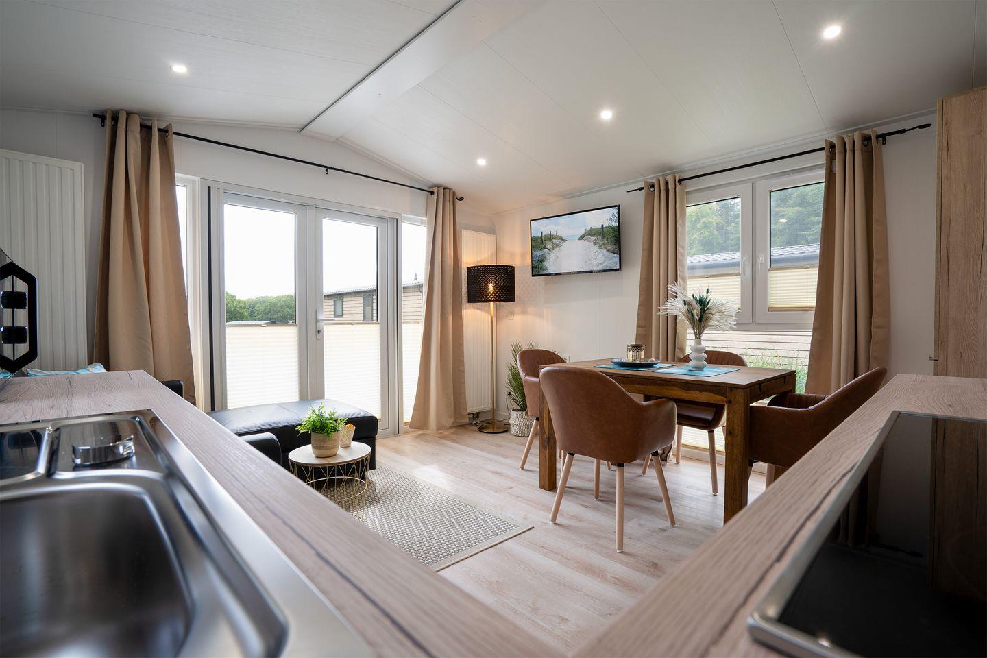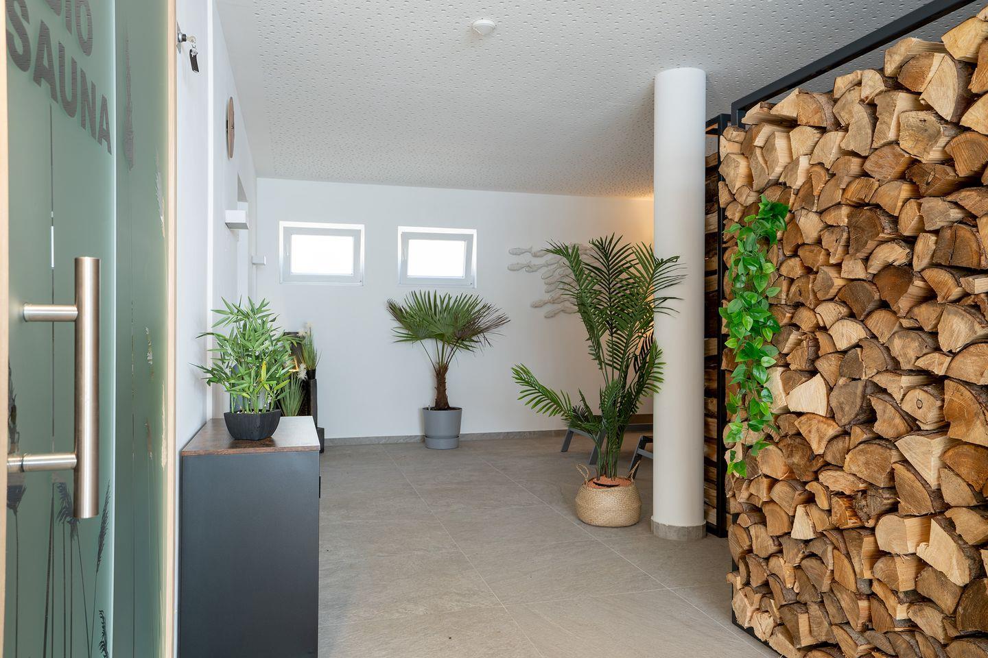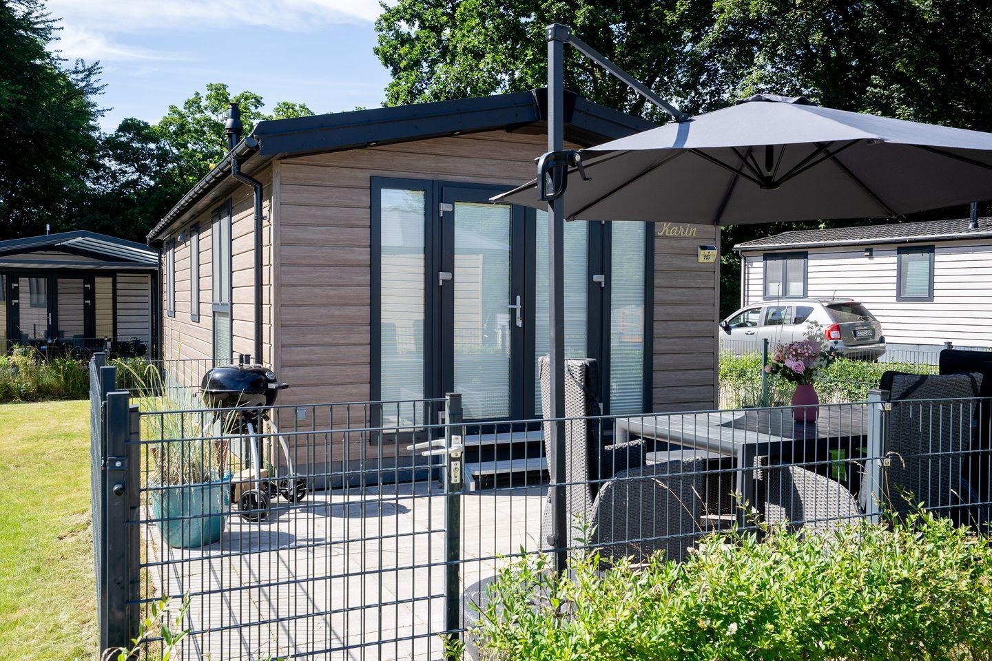 Ebenerdige Terrasse: Die großzügige, ebenerdige Terrasse ist ein Highlight dieses Ferienhauses. Genießen Sie Ihr Frühstück im Freien oder entspannen Sie sich am Abend bei einem Glas Wein, während Sie die ruhige Umgebung und die rauschenden Blätter des Waldes im Hintergrund erleben.