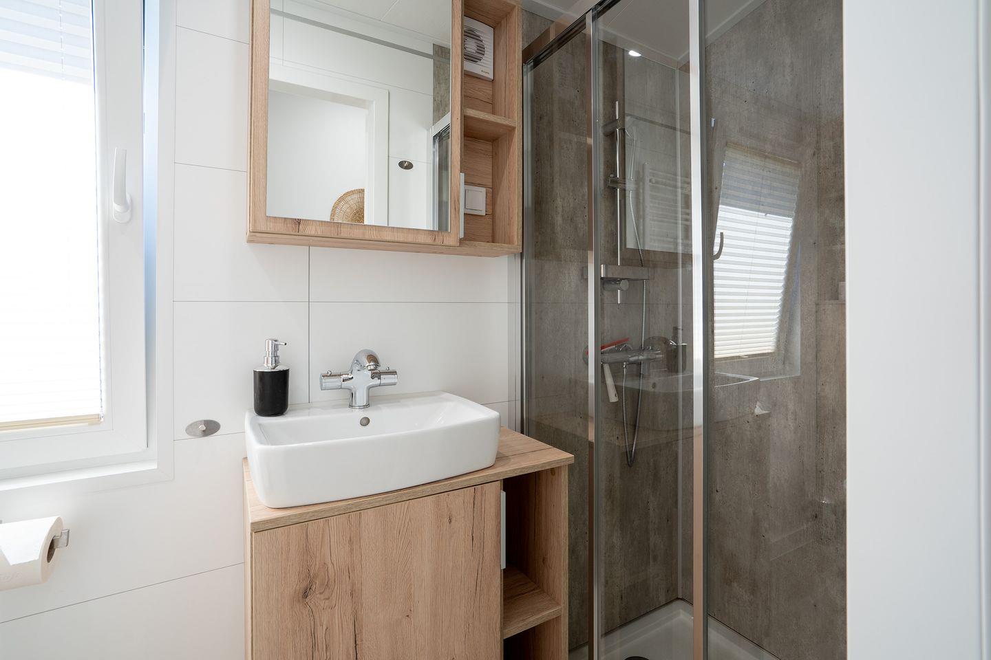 Das Ostseecamp Küstenkind verfügt über insgesamt 3 Zimmer, darunter 2 komfortable Schlafzimmer, die mit einem hochwertigen Vinylboden ausgestattet sind, und ein einladendes Wohnzimmer, das durch seine offene Gestaltung mit der Küche harmonisch verbunden ist. Hier genießen Sie nicht nur den Blick auf die Umgebung, sondern auch die gesellige Atmosphäre, die das gemeinsame Kochen und Beisammensein zu einem besonderen Erlebnis macht. Die moderne Küche ist vollständig ausgestattet inklusive Herd, Backofen, Spülmaschine und allen notwendigen Küchenutensilien. Hier finden Sie alles, was Sie zur Zubereitung Ihrer Mahlzeiten benötigen. Ein Essbereich ist ebenfalls vorhanden und lädt dazu ein, gesellige Abendessen zu genießen.