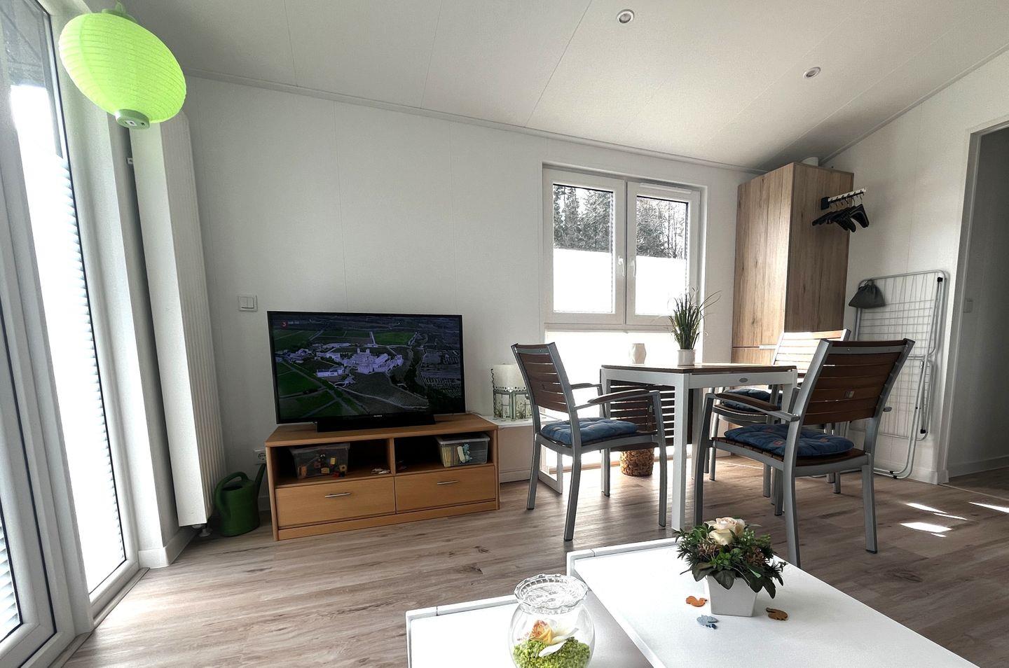 Das Ostseecamp Ferienhaus HamMeer in Scharbeutz bietet Platz für bis zu vier Personen auf 40 m². Es verfügt über zwei Schlafzimmer, eine voll ausgestattete offene Küche, ein modernes Bad mit bodengleicher Dusche sowie eine Terrasse und einen eingezäunten Garten. WLAN, zwei große Fernseher, Gemeinschaftswaschmaschine und ein Privatparkplatz sind vorhanden. Haustiere und Kinder sind willkommen.