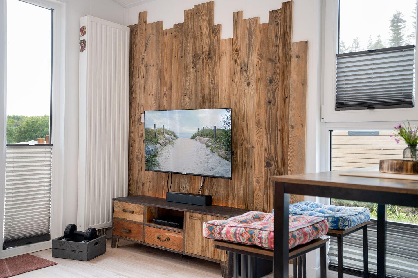 Das Ferienhaus bietet Platz für bis zu 4 Personen und ist modern eingerichtet. Der Wohnbereich ist gemütlich mit bequemem Sofa, einem Flachbild-TV und direktem Zugang zur Terrasse. Eine Surround-Anlage und ein Blu-ray-Player sorgen für beste Unterhaltung. Die voll ausgestattete Küche verfügt über einen Herd, Backofen, Geschirrspüler und eine Kaffeemaschine. Der stilvolle Essbereich lädt zu gemeinsamen Mahlzeiten ein. Zwei komfortable Schlafzimmer und das moderne Badezimmer mit Dusche sorgen für zusätzlichen Komfort. Eine große Terrasse aus Lärchenholz mit massiven Gartenmöbeln und einem Napoleon Gasgrill sowie ein gepflegter Garten runden das Angebot ab.