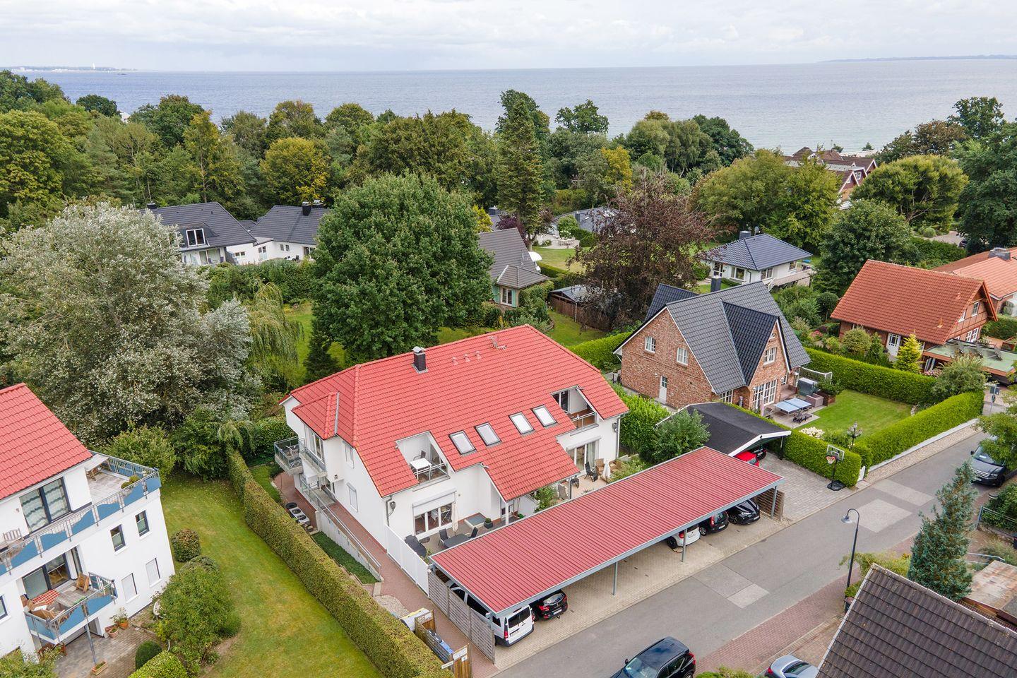 Die Scharbeutzer Dünenmeile mit zahlreichen Restaurants, Cafés und Geschäften und der feinsandige Ostseestrand sind fußläufig zu erreichen.