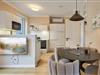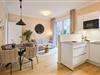 Der Essbereich und die voll ausgestattete Küche lassen keine Wünsche offen. Neben einer Nespresso-Maschine, einer Filterkaffeemaschine und einem Wasserkocher stehen auch Toaster, Mikrowelle, Backofen, Geschirr sowie Töpfe und Pfannen zur Verfügung.