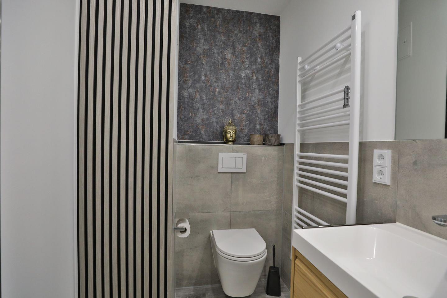 Jede der beiden Wohnungen verfügt über einen eigenen Balkon mit Südausrichtung, sodass Sie ganztägig die Sonne genießen können. Die Wohnungen bieten insgesamt drei Schlafzimmer: ein Elternschlafzimmer mit Boxspringbett (200x200 cm), ein weiteres Schlafzimmer mit Etagenbett (auch für Erwachsene geeignet) und der Möglichkeit, ein Babyreisebett aufzustellen, sowie ein drittes Schlafzimmer mit Elternbett (180x200 cm) und offener Duschnische. Ergänzt wird das Angebot durch ein modernes Badezimmer sowie ein separates WC mit großem Waschbecken.