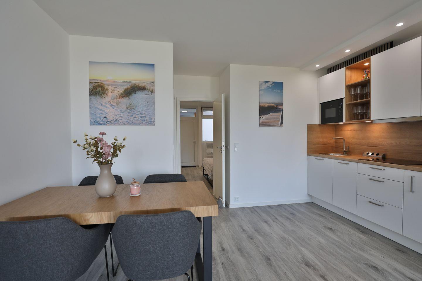 Ein besonderes Highlight: Die Strandkoje Nr. 106 setzt sich aus den Wohnungen Nr. 104 und Nr. 105 zusammen und kann in der Hauptsaison vom 05.07. bis zum 31.08. als eine große, zusammenhängende Einheit gemietet werden – dank der praktischen Verbindungstür. In der Nebensaison stehen beide Wohnungen auch getrennt zur Verfügung, was flexible Buchungsmöglichkeiten für Paare, Familien oder Einzelreisende bietet.