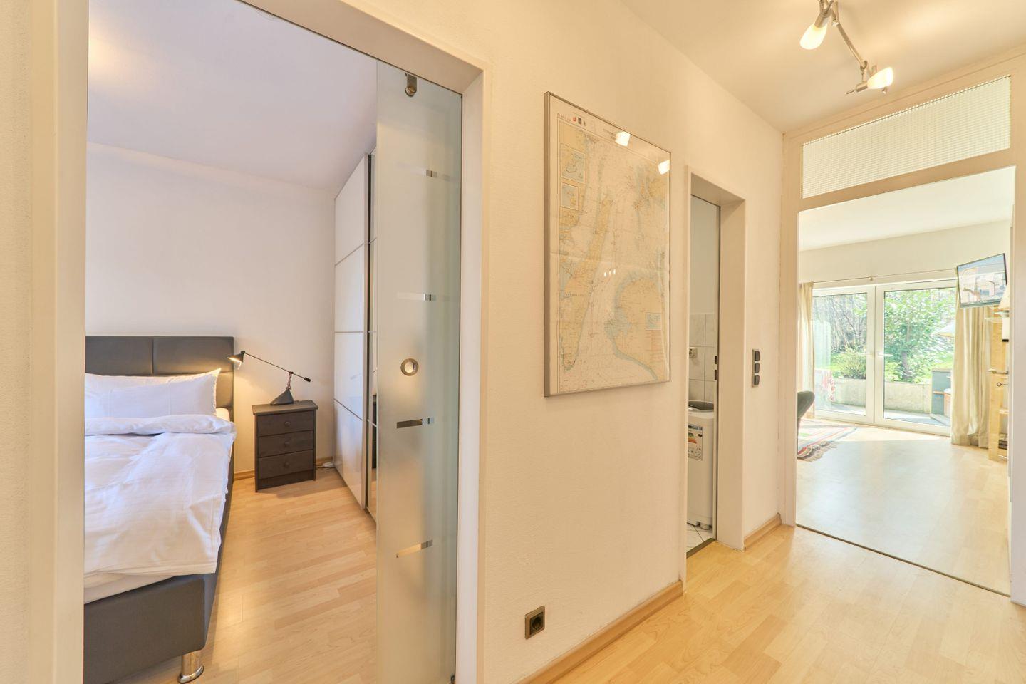 Die lichtdurchflutete Zwei-Zimmer-Wohnung überzeugt mit einer liebevoll gestalteten Einrichtung und einer harmonischen Wohlfühlatmosphäre. Im Schlafzimmer erwartet Sie ein großzügiges Doppelbett (180x200 cm), das für erholsame Nächte sorgt. Für eine weitere Person steht im Wohnbereich eine komfortable Schlafcouch zur Verfügung. Die moderne voll ausgestattete Küche lädt dazu ein, gemeinsam zu kochen und den Tag in gemütlicher Runde ausklingen zu lassen. Der angrenzende Wohnbereich bietet eine einladende Atmosphäre, in der Sie entspannte Stunden verbringen können.