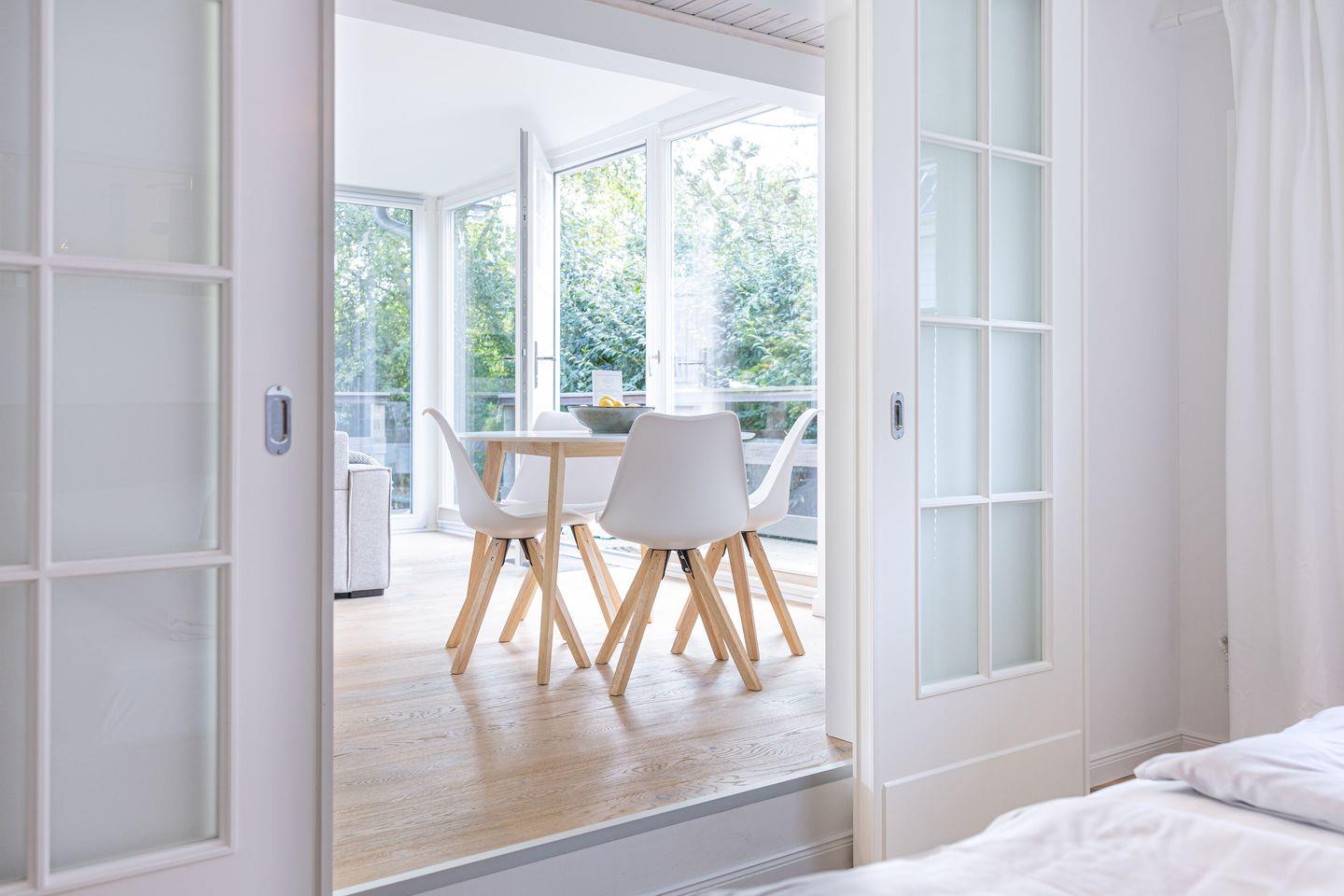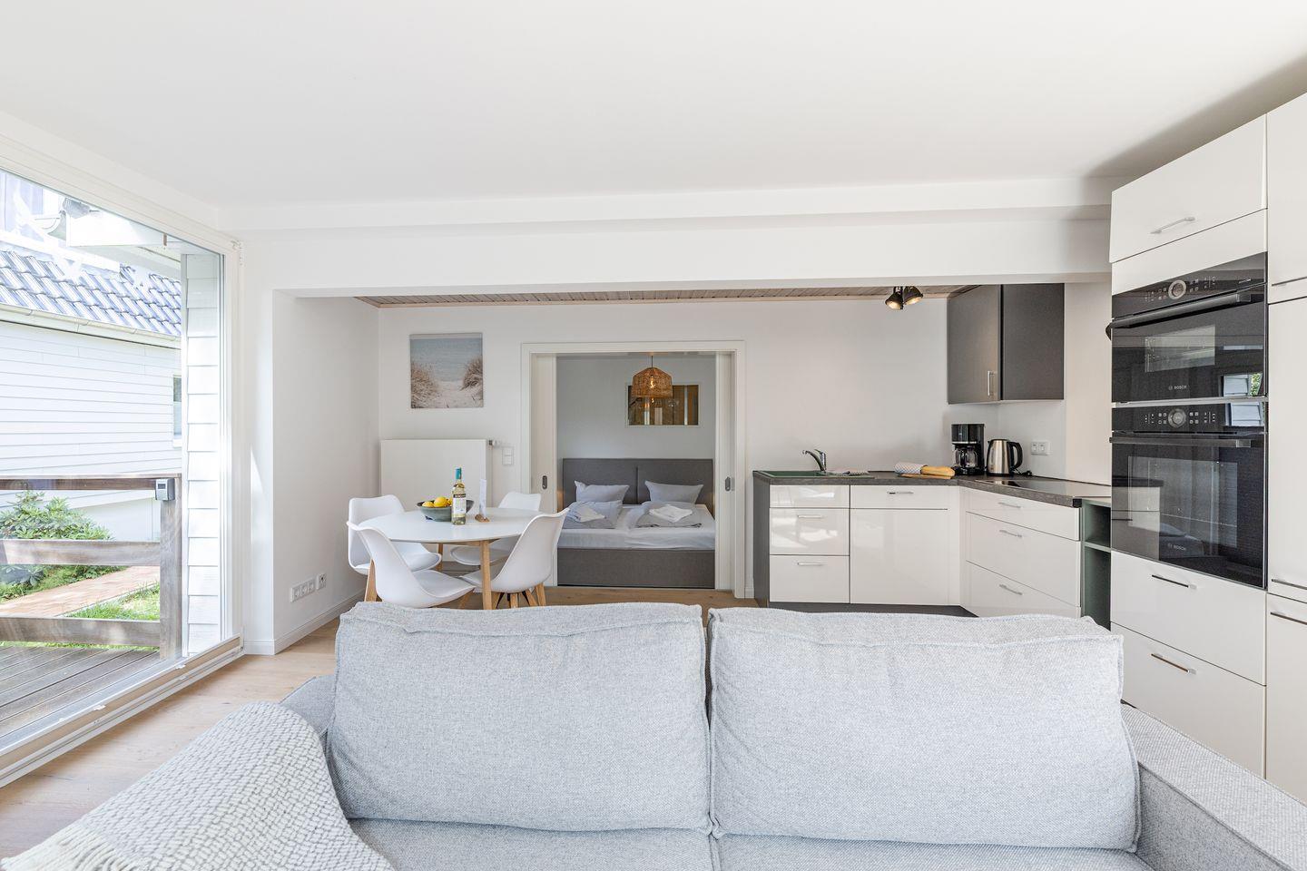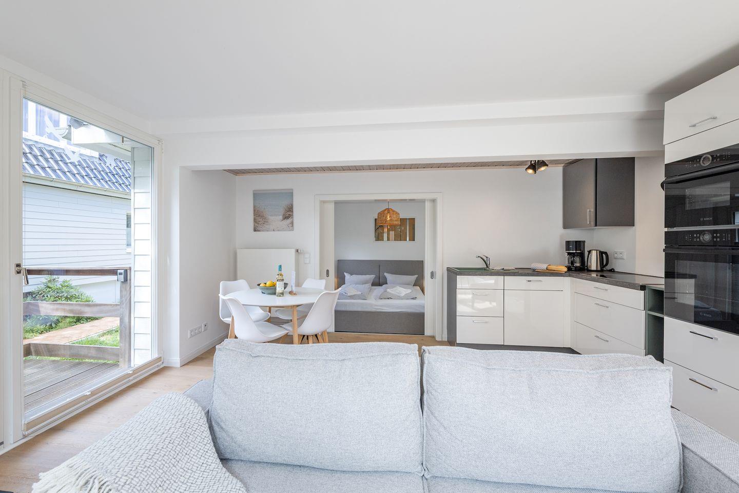 Helle Farben, Parkettböden und ein offenes Raumkonzept schaffen eine freundliche Atmosphäre. Die voll ausgestattete Küche mit Spülmaschine und Kaffeemaschine schließt sich direkt an den Wohnbereich mit Sofa und Esstisch an. Im Schlafzimmer sorgt ein komfortables Bett für erholsamen Schlaf. Das Bad ist großzügig geschnitten und mit bodengleicher Dusche sowie Badewanne ausgestattet. WLAN, TV, Bettwäsche und Handtücher sind inklusive.