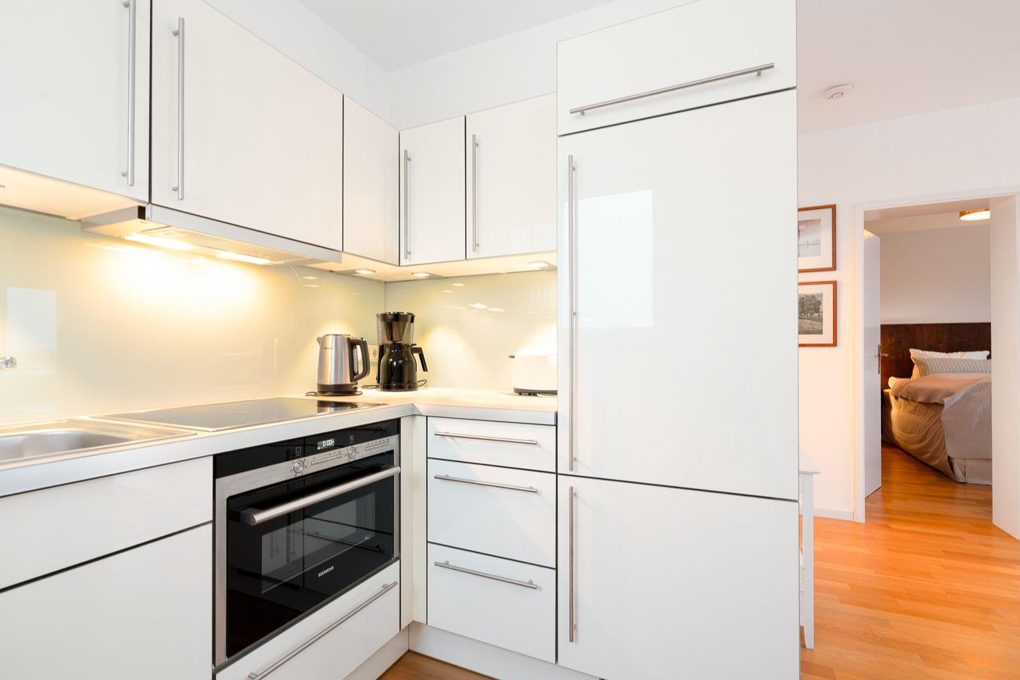 Vom Wohnraum gelangen Sie auf den überdachten und windgeschützten Balkon, der gemeinsam mit den Gartenmöbeln zum entspannten Verweilen einlädt. Die offen zum Wohnzimmer gestaltete Küche ist mit Backofen und Herd ausgestattet, sowie umfangreichen Küchenutensilien wie Kaffeemaschine, Wasserkocher und Toaster. Das Badezimmer bietet eine Dusche mit Wanne, Waschbecken, Spiegel und WC.