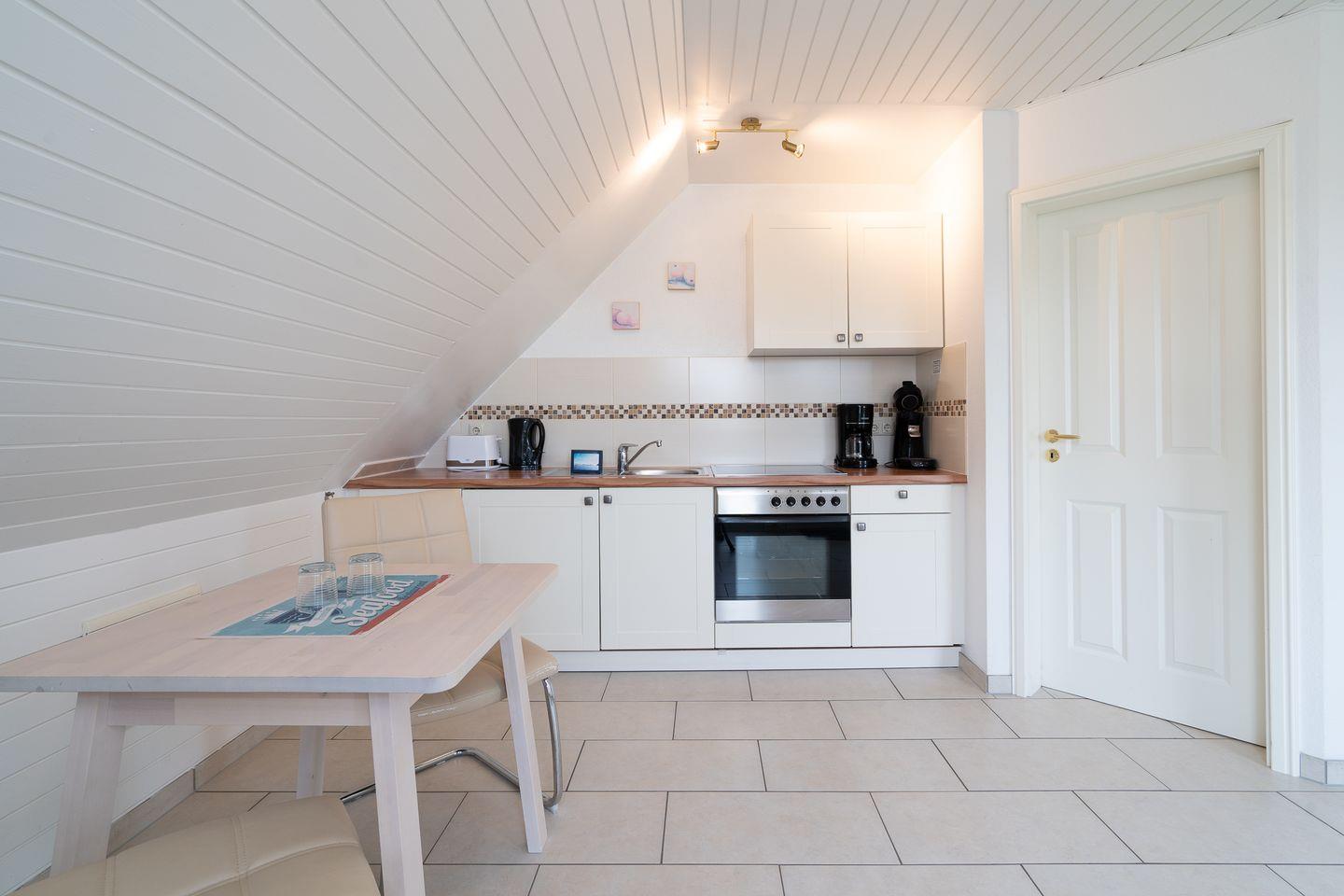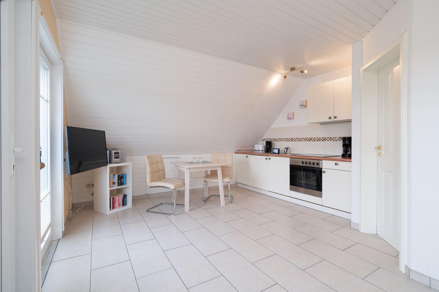 Gemütliche und lichtdurchflutete 2-Zimmer-Wohnung im Dachgeschoss in bevorzugter Wohngegend von Scharbeutz, ideal für 2 Personen. Offener Wohnbereich, gut ausgestattete Küche, separates Schlafzimmer und modernes Duschbad. Ruhig gelegen, strandnah, mit kostenfreiem WLAN und eigenem Parkplatz.