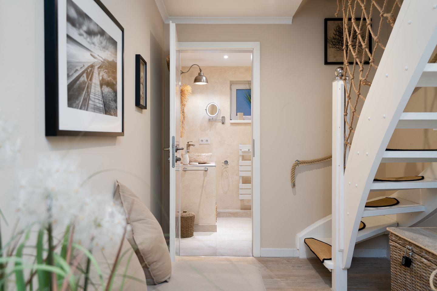 Die Ferienwohnung Dock 3 bietet Euch den idealen Rahmen für einen entspannten Urlaub an der Ostsee. Auf rund 68 m² Wohnfläche verteilt sich das hochwertig ausgestattete Appartement über zwei Ebenen und überzeugt durch ein durchdachtes Raumkonzept, viel Tageslicht und eine warme, einladende Atmosphäre. Helle Farben, natürliche Materialien und liebevolle Details schaffen ein modernes Wohngefühl mit einem dezenten Scandi-Boho-Akzent, das sofort Urlaubsstimmung aufkommen lässt.