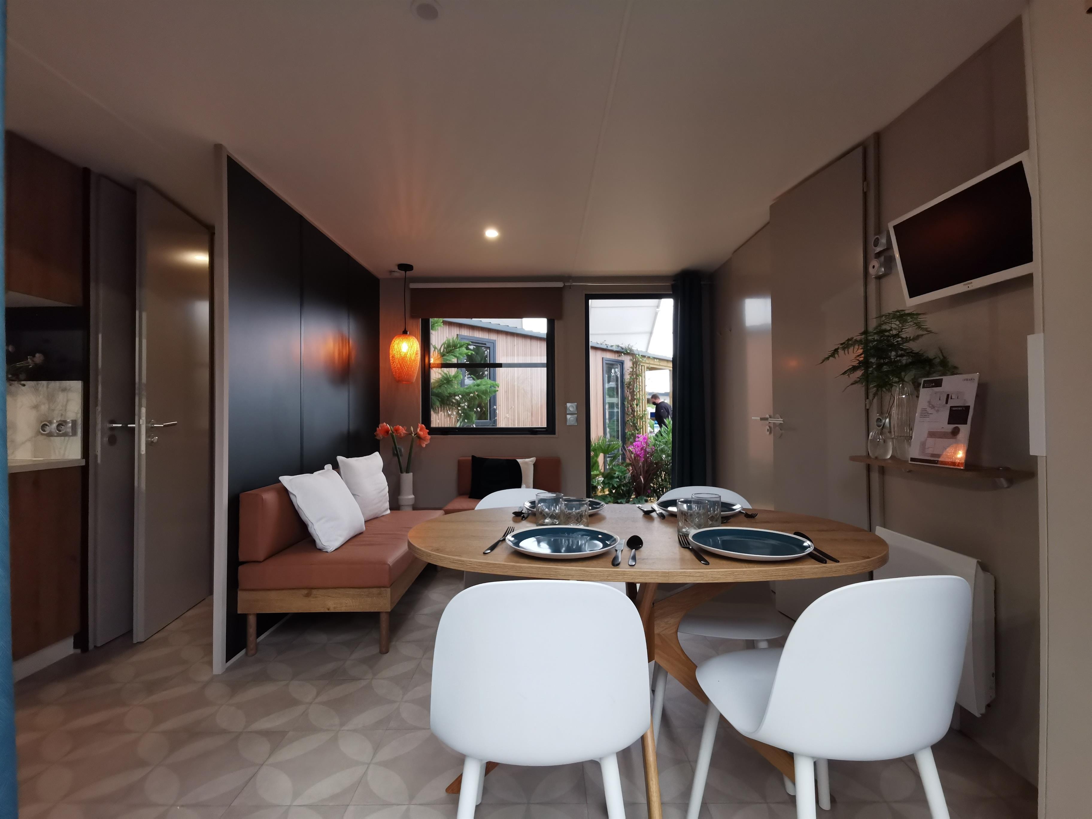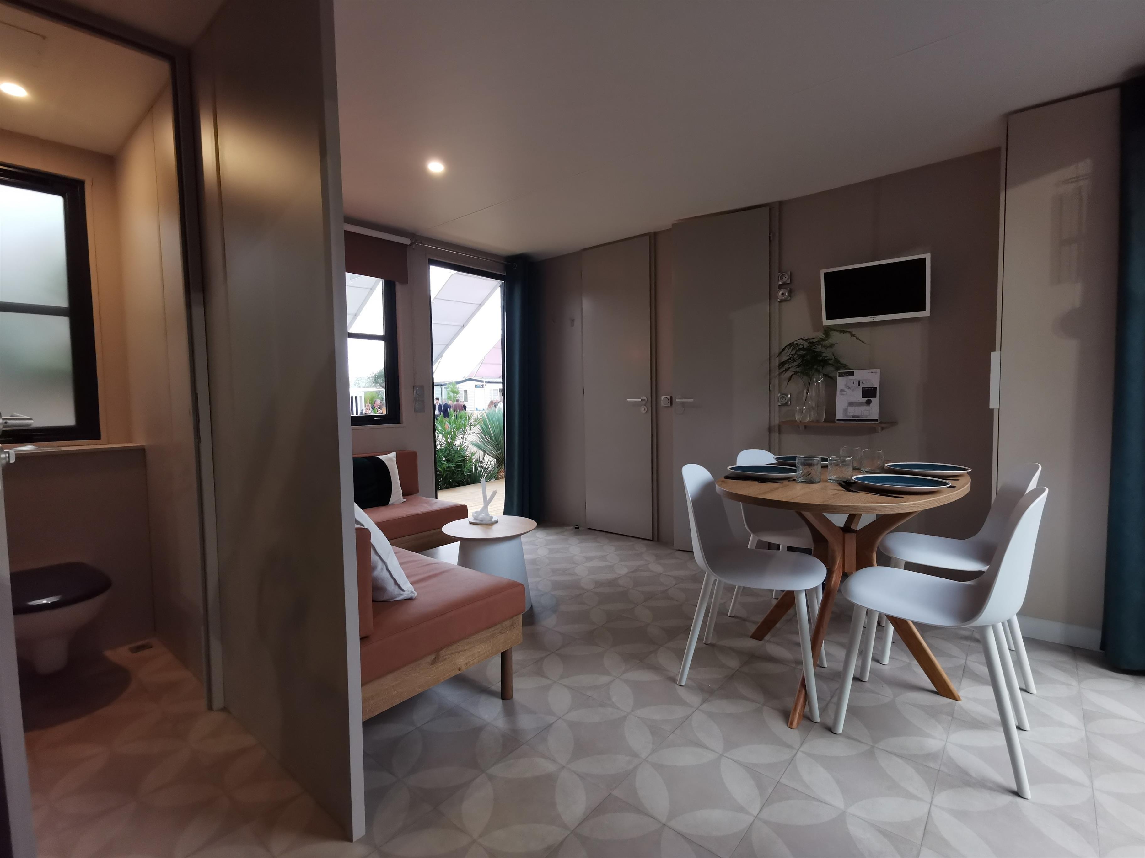 Das Strandhaus Typ "Bootsmann" ist die komfortable Alternative zum Campen: Campingfeeling mit allen Vorteilen einer 5-Sterne-Campingferienanlage (insbesondere für die Kids) und dennoch die Privatsphäre im eigenen Häuschen mit Dusche und WC genießen.