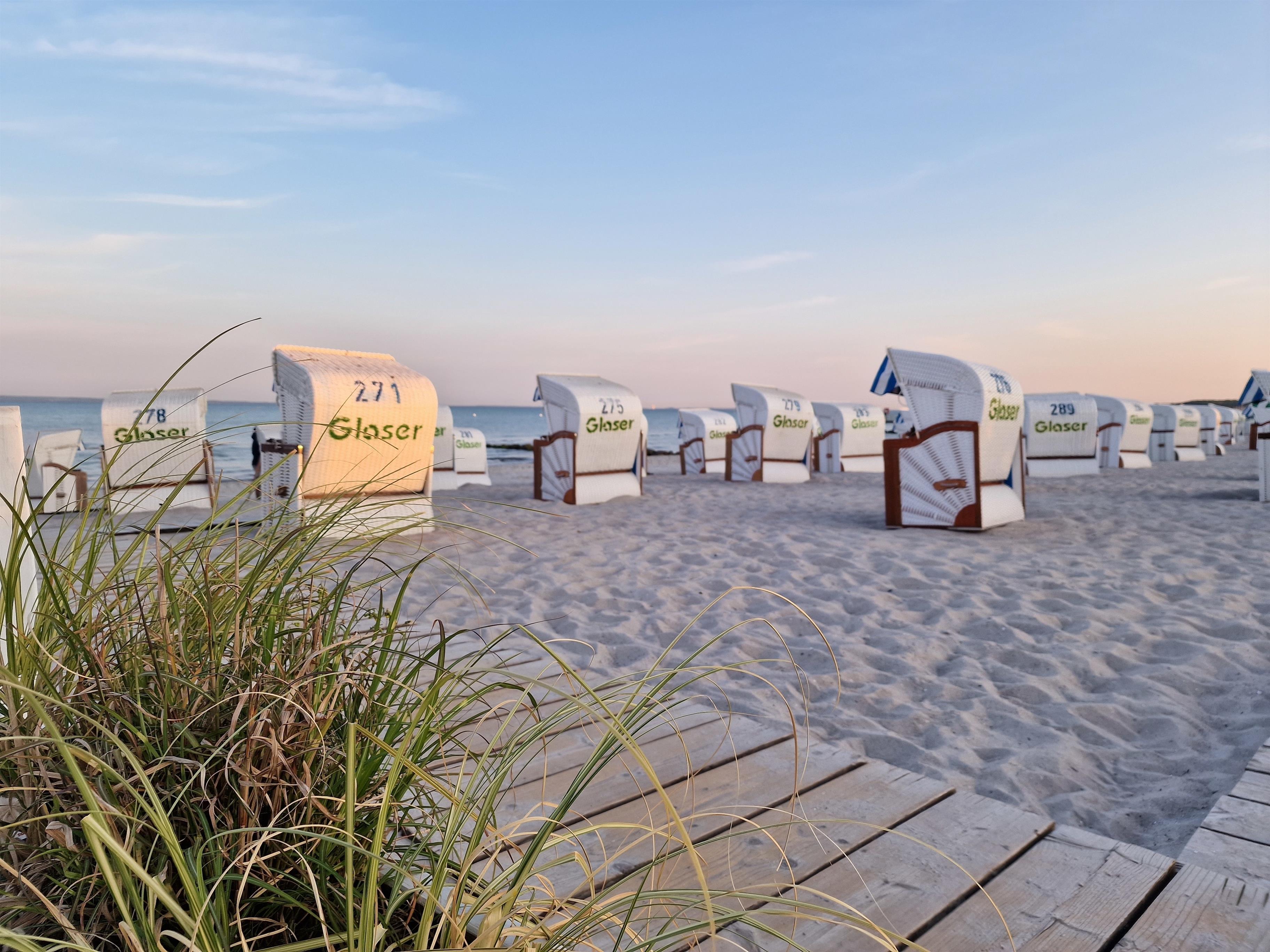 Die Terrasse mit Gartenmöbel und Strandkorb rundet das Angebot ab.