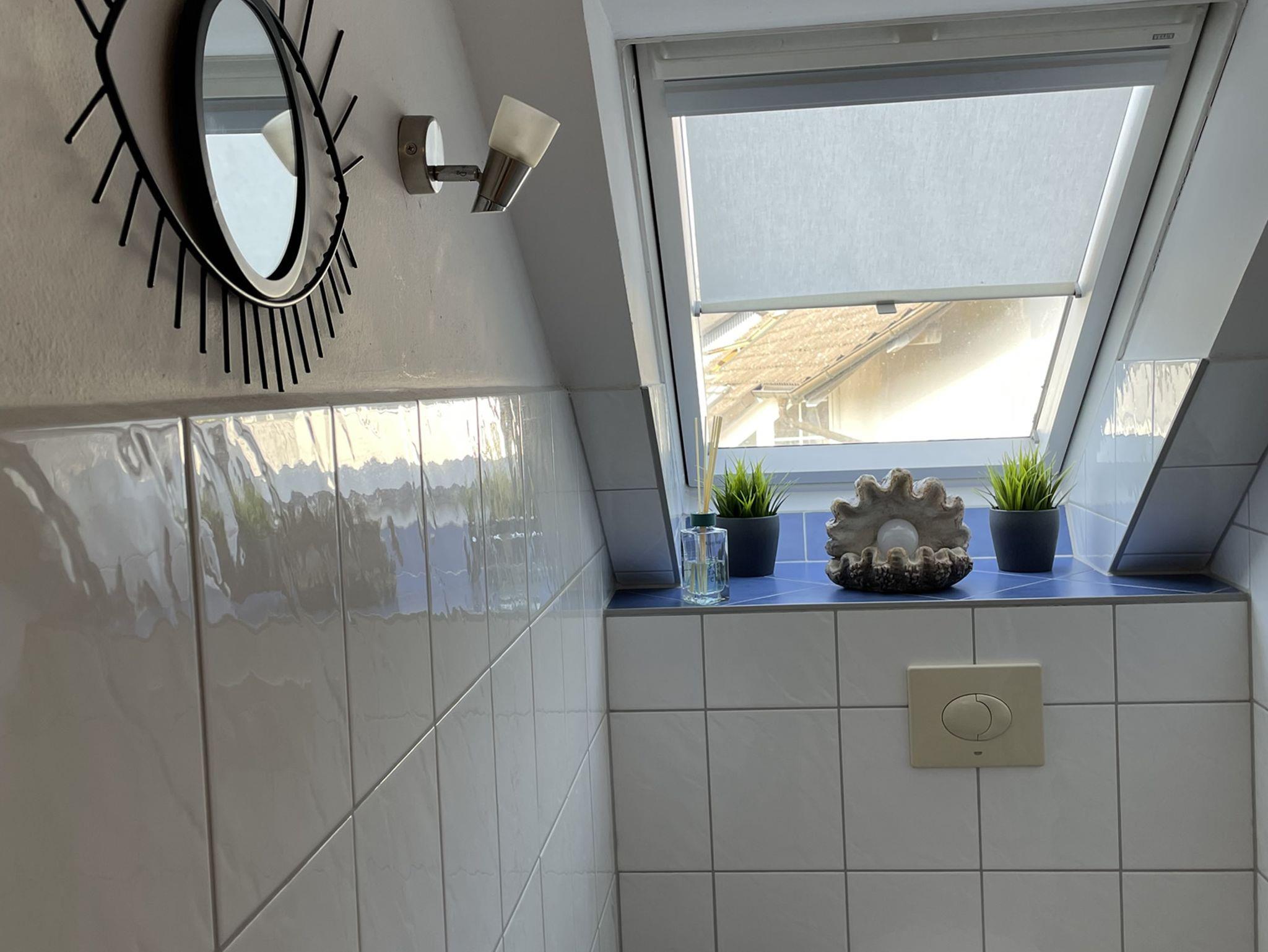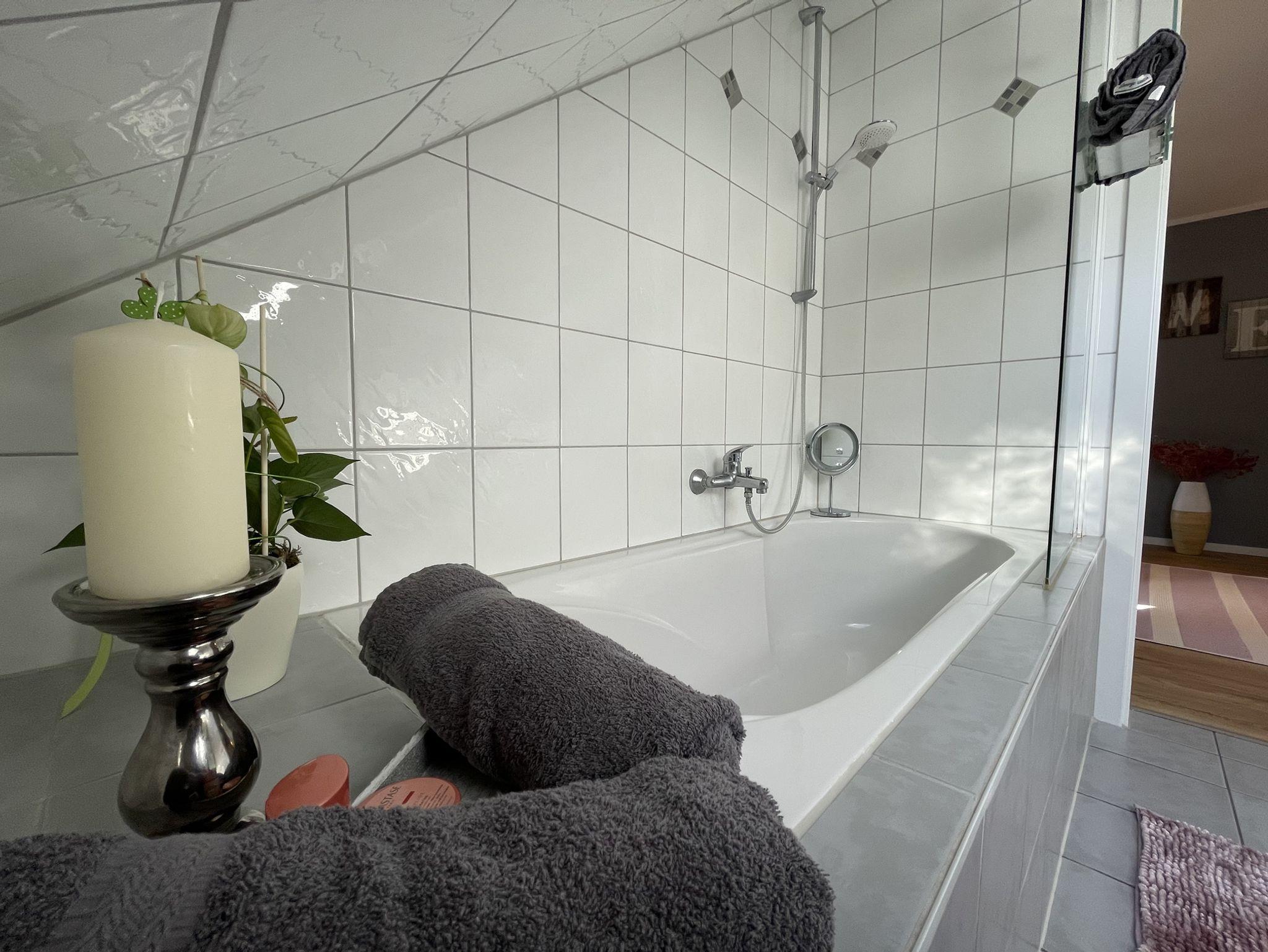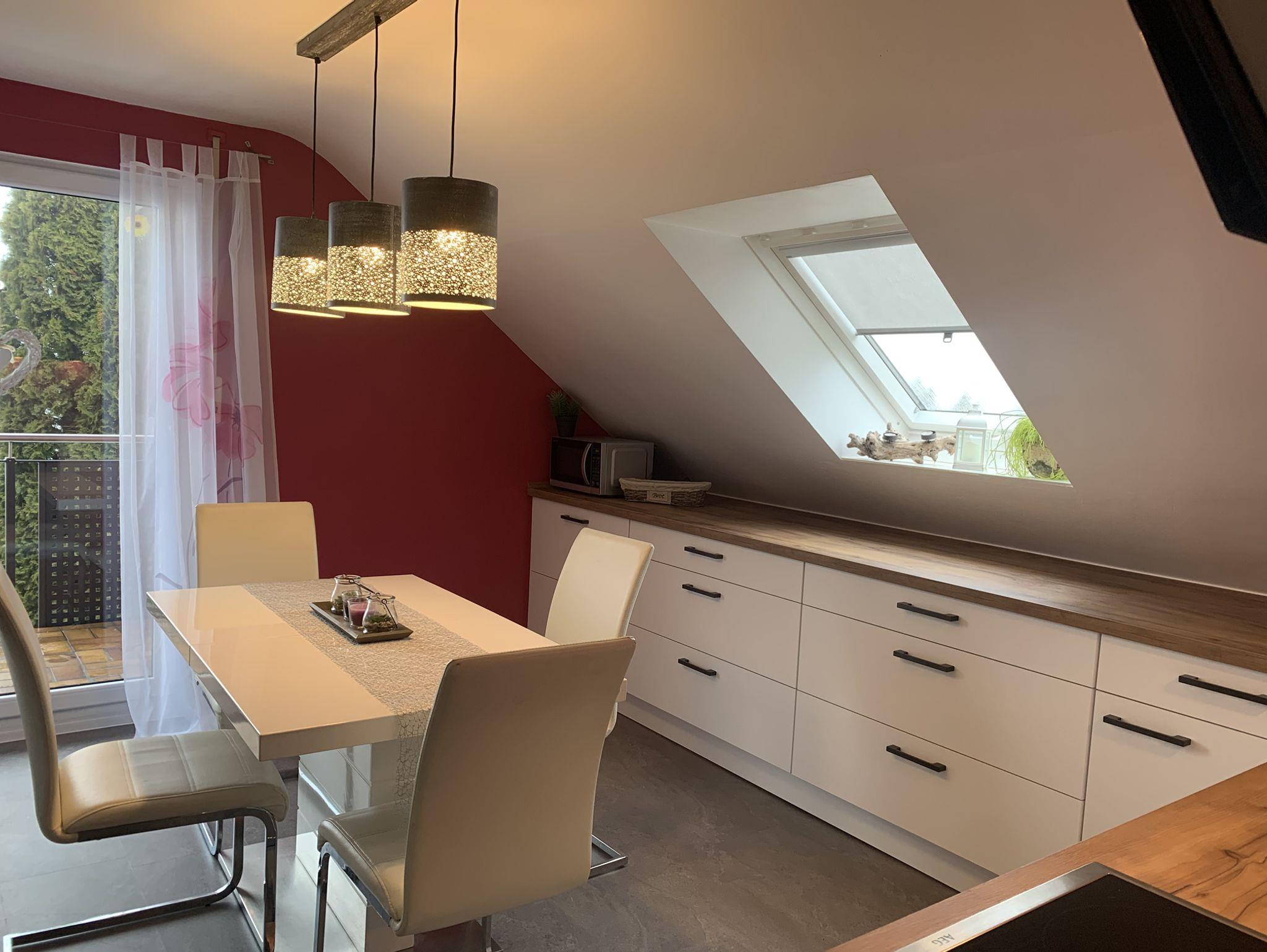 Diese 4 Sterne Ferienwohnung liegt im 1. Stock mit gemütlichen Dachschrägen. Egal, ob Sie auf dem Balkon zur Ostseite frühstücken wollen, oder doch lieber auf der überdachten Loggia (Süd-West), dass ist Ihre Entscheidung. Da in dieser Ferienwohnung keine Terrasse zur Verfügung steht, können Sie unseren 1200qm großen Garten mitbenutzen. Zwei Holzliegen stehen Ihnen zur Verfügung. Weiterhin befindet sich auf der Loggia ein Elektrogrill.