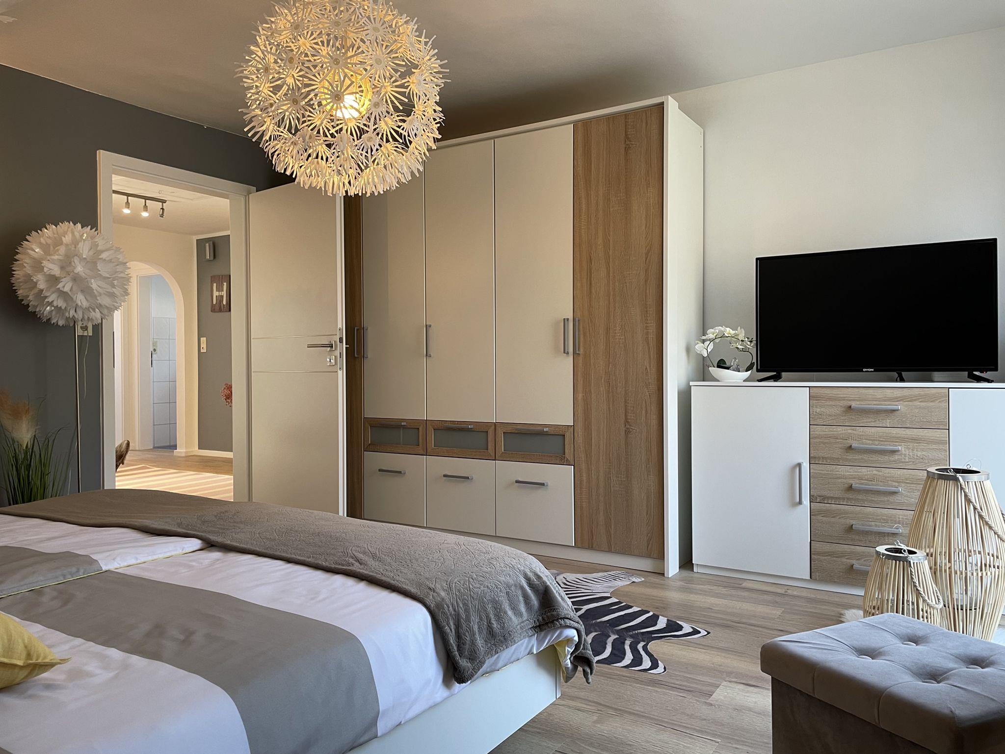 Wir bieten Ihnen eine Ferienwohnung für 2 Erwachsene im Doppelbett (180x200cm) und 1 Einzelbetten (90x200cm). Es steht weiterhin eine gemütliche Couch im Wohnzimmer zur Verfügung. Weitere Schlafmöglichkeiten vorhanden!