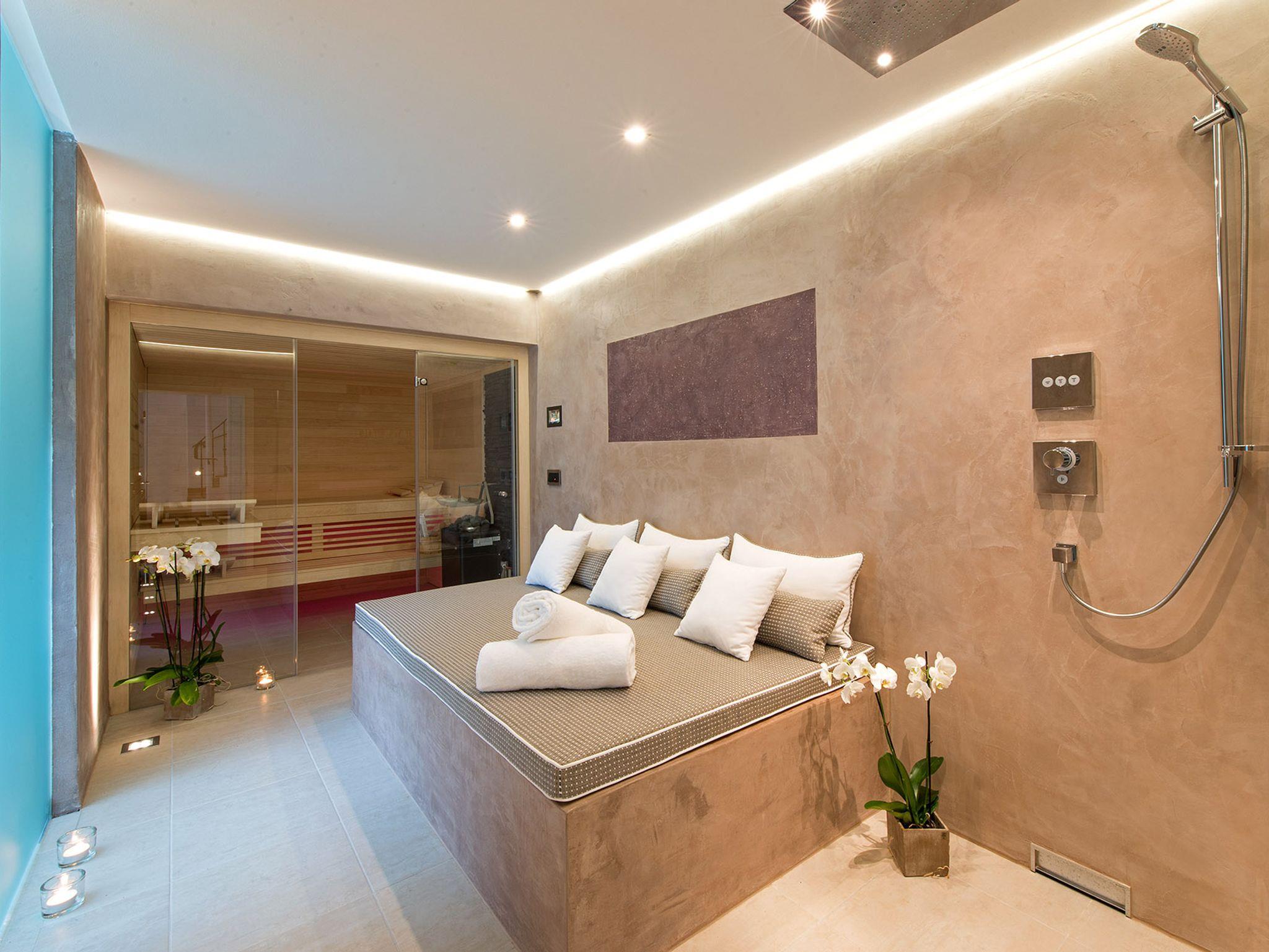 Privater Spa-Bereich mit Sauna, Rainshower-Dusche und beheiztem Day-Bed, Internetzugang/WLAN, 2 Kabel-TV, DVD-/Blu-ray-Player, CD-Player und Multi-Room-Soundsystem sind selbstverständlich. Hochwertige Bettwäsche, Bademäntel, Handtücher, Saunaöle, hochwertige Shampoos und Bodylotions, Fön und Safe, aber auch zahlreiche Dinge des täglichen Bedarfs sind vorhanden. Die Sonnenterrasse ist mit einer Sitzgruppe für 4 Personen und 2 Sonnenliegen ausgestattet. Waschmaschine und Trockner stehen zur Verfügung.