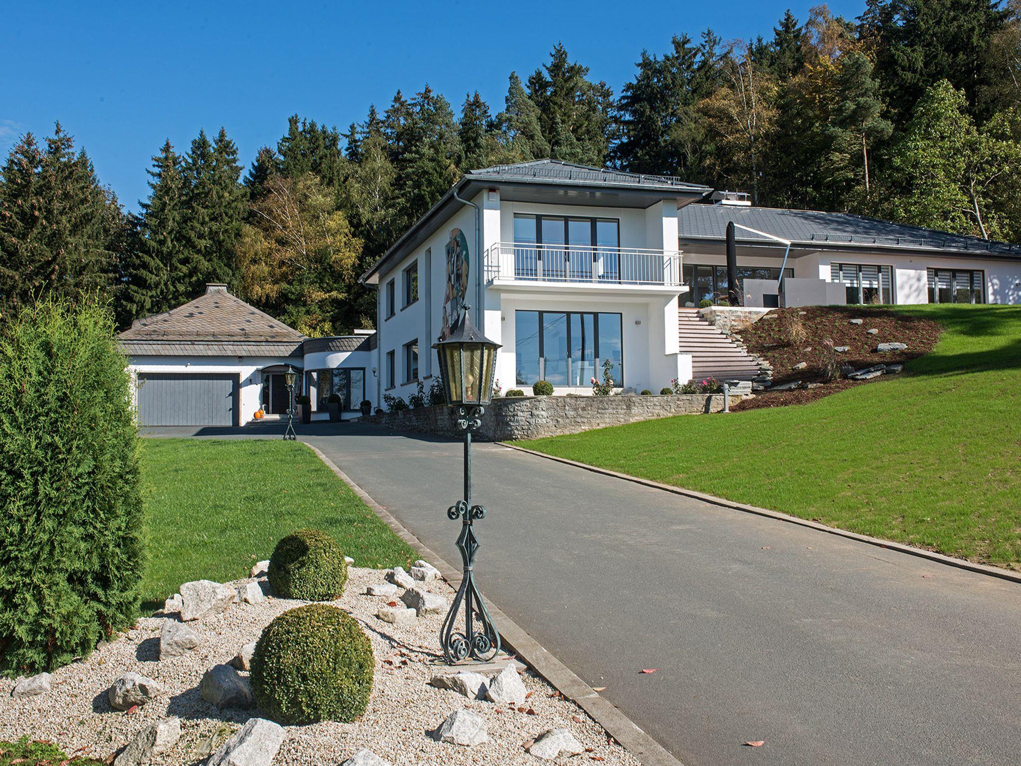 Das parkähnliche Grundstück ermöglicht Ihnen ein ausgiebiges Sonnenbad im Sommer, genussvolle Abende auf der großen Sonnenterrasse, Ruhe pur und eine einzigartige Aussicht.
