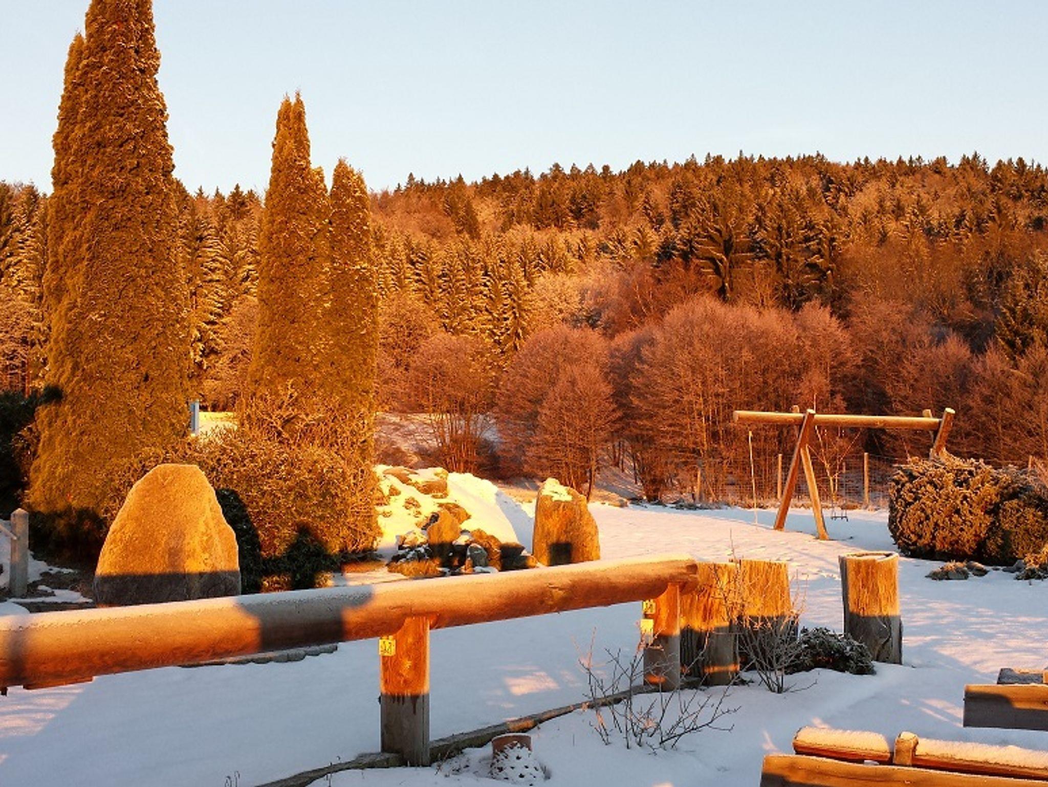 Unser idyllisches Landhaus (Pension Garni) liegt oberhalb der Nebelgrenze, in traumhafter Alleinlage auf dem Berg und ist umgeben von Wald, Wiesen und dem hauseigenen Rothirschgehege. Im Herbst ist der Mischwald besonders traumhaft. Mediterane Atmosphäre im Feng-Shui Garten.