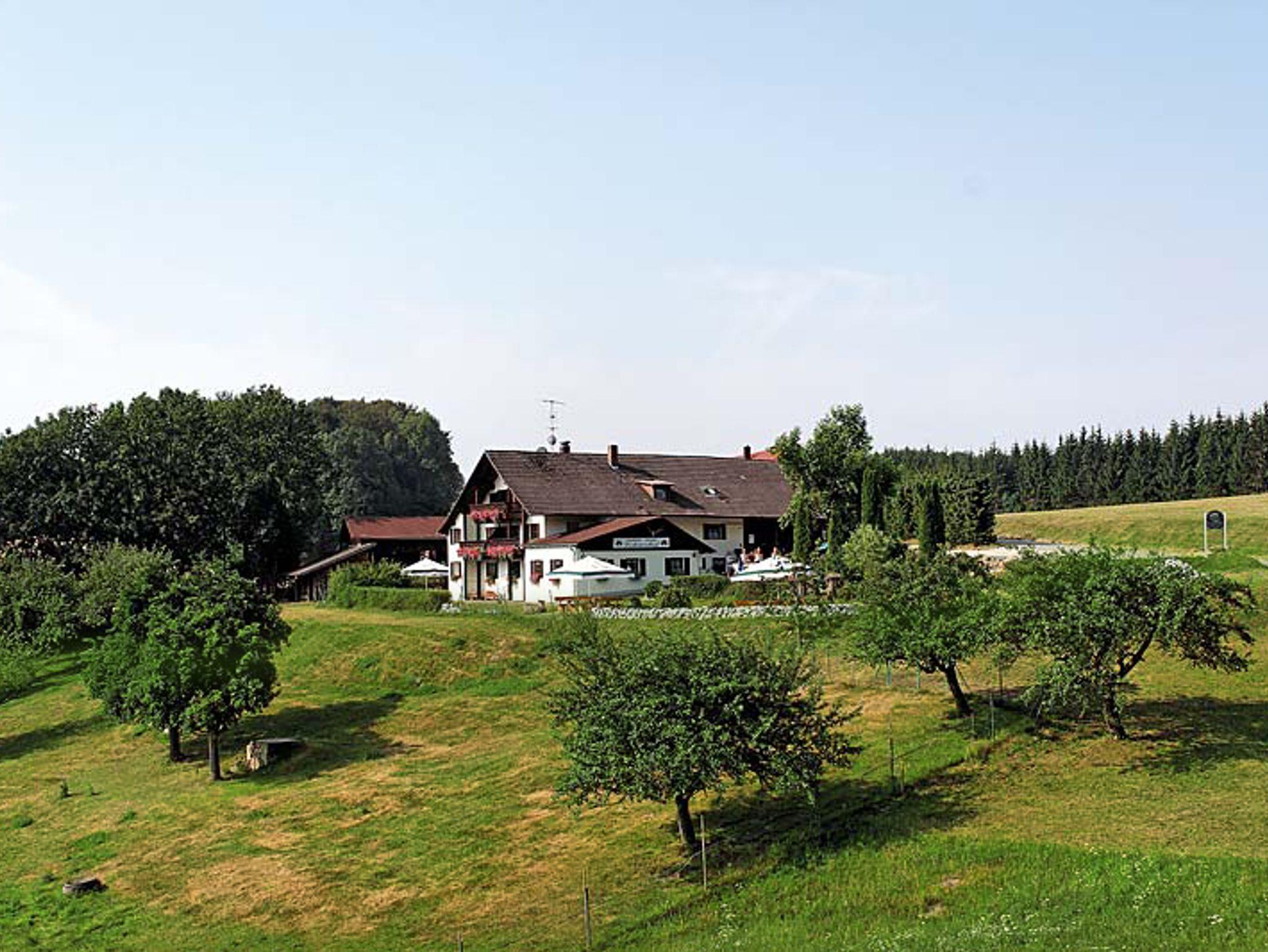 Unser idyllisches Landhaus (Pension Garni) liegt oberhalb der Nebelgrenze, in traumhafter Alleinlage auf dem Berg und ist umgeben von Wald, Wiesen und dem hauseigenen Rothirschgehege. Im Herbst ist der Mischwald besonders traumhaft. Mediterane Atmosphäre im Feng-Shui Garten.