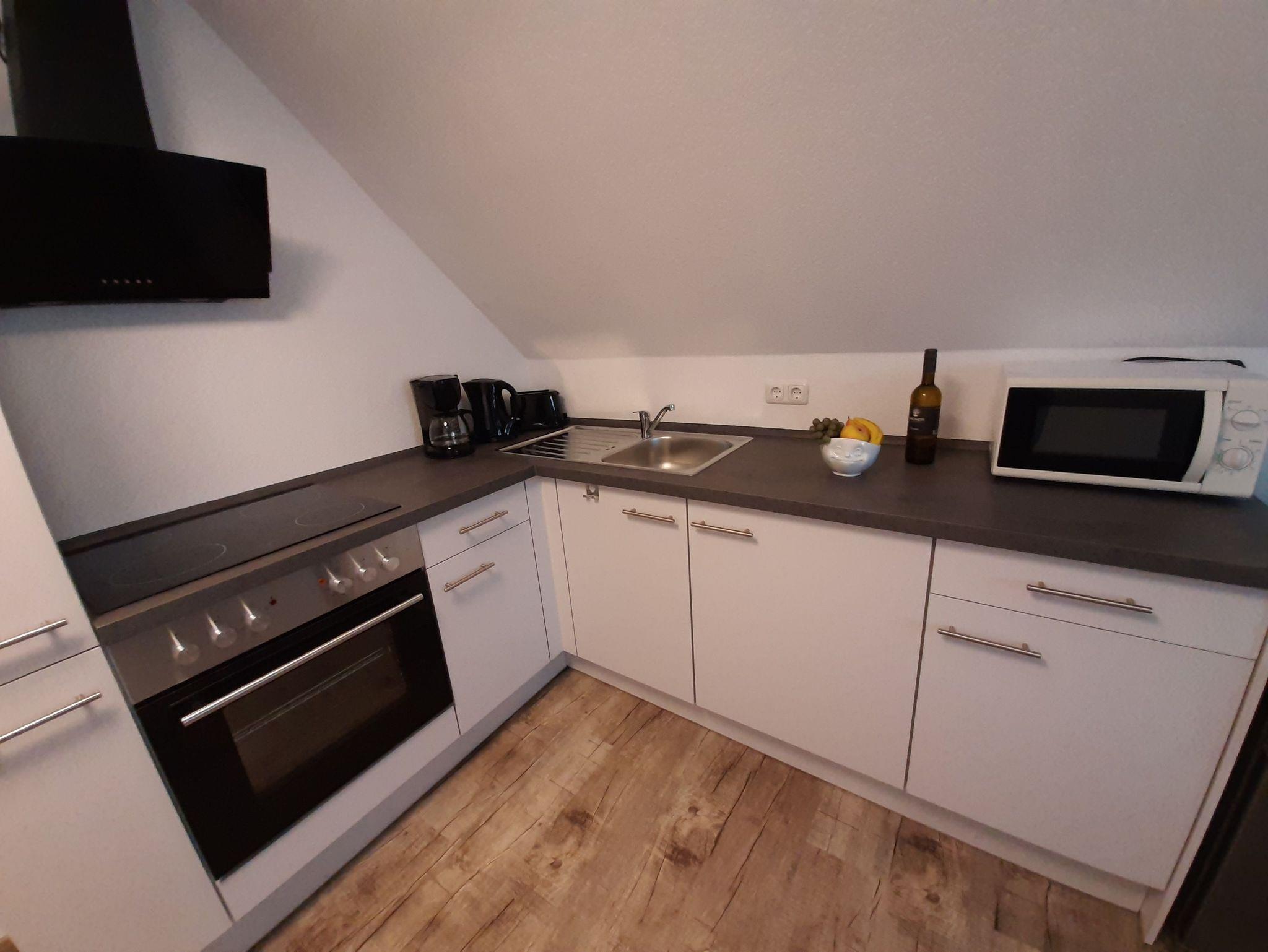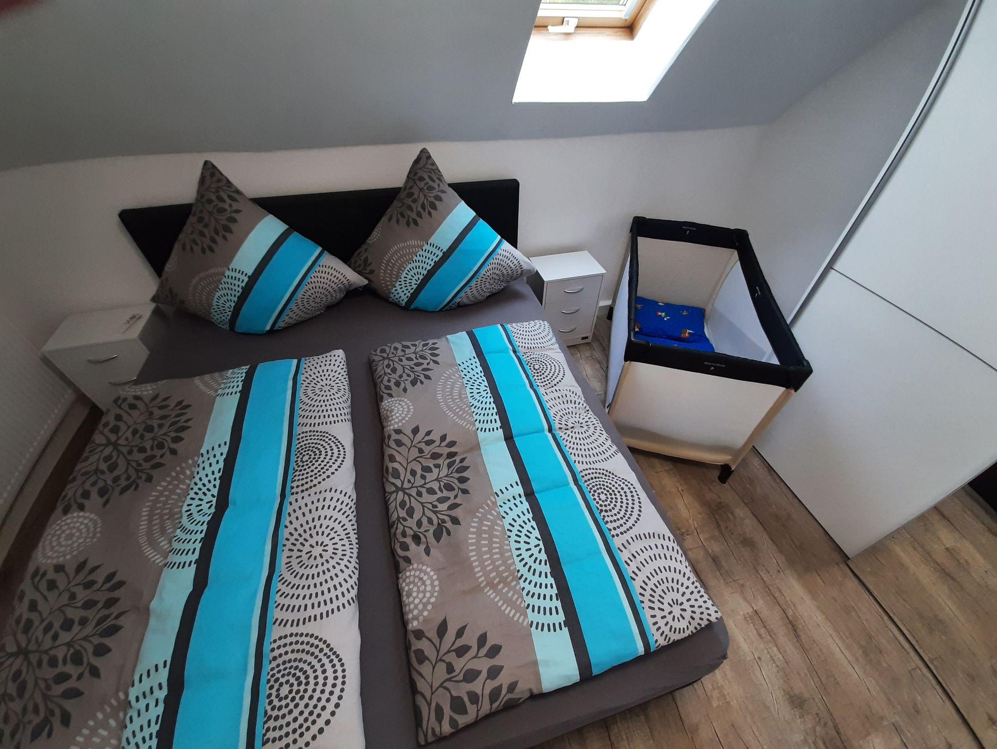 Unsere Ferienwohnung MERLIN ist ca. 64 qm groß und befindet sich im Dachgeschoss unseres Hauses. Sie besteht aus einer eingerichteten Küche mit Essbereich, einem Wohnzimmer, einem Schlafzimmer (Bettengröße: 180x200 cm) und einem sehr großen Badezimmer mit Badewanne und Dusche.