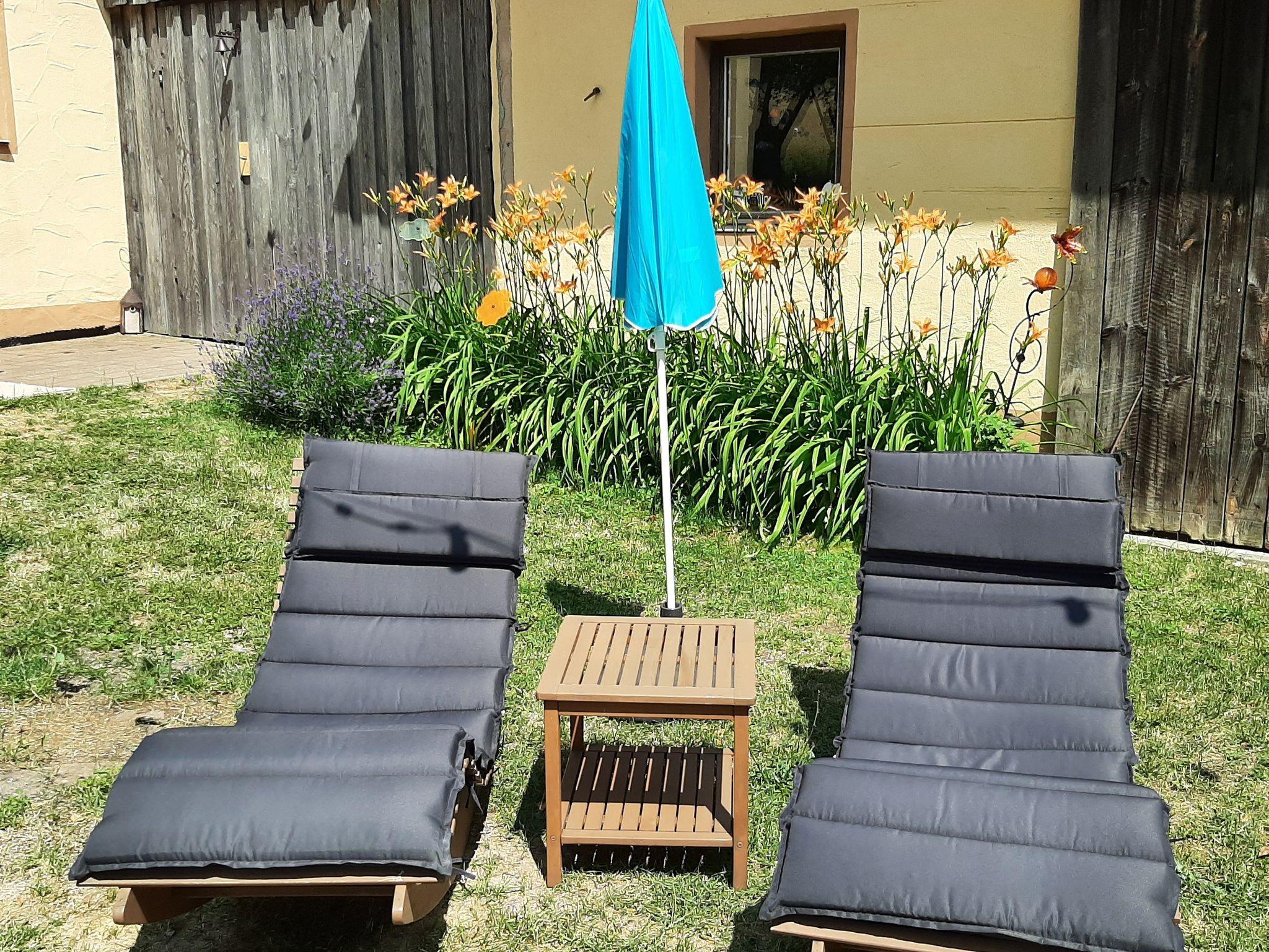 Die großzügige Außenanlage (Garten- und Hofbereich) mit verschiedenen Sitzgelegenheiten, einem überdachten Freisitz, sowie einer großen Spiel- und Liegewiese verwandeln das Anwesen in eine Wohlfühloase und steht allen Gästen des Ferienhauses zur Verfügung.