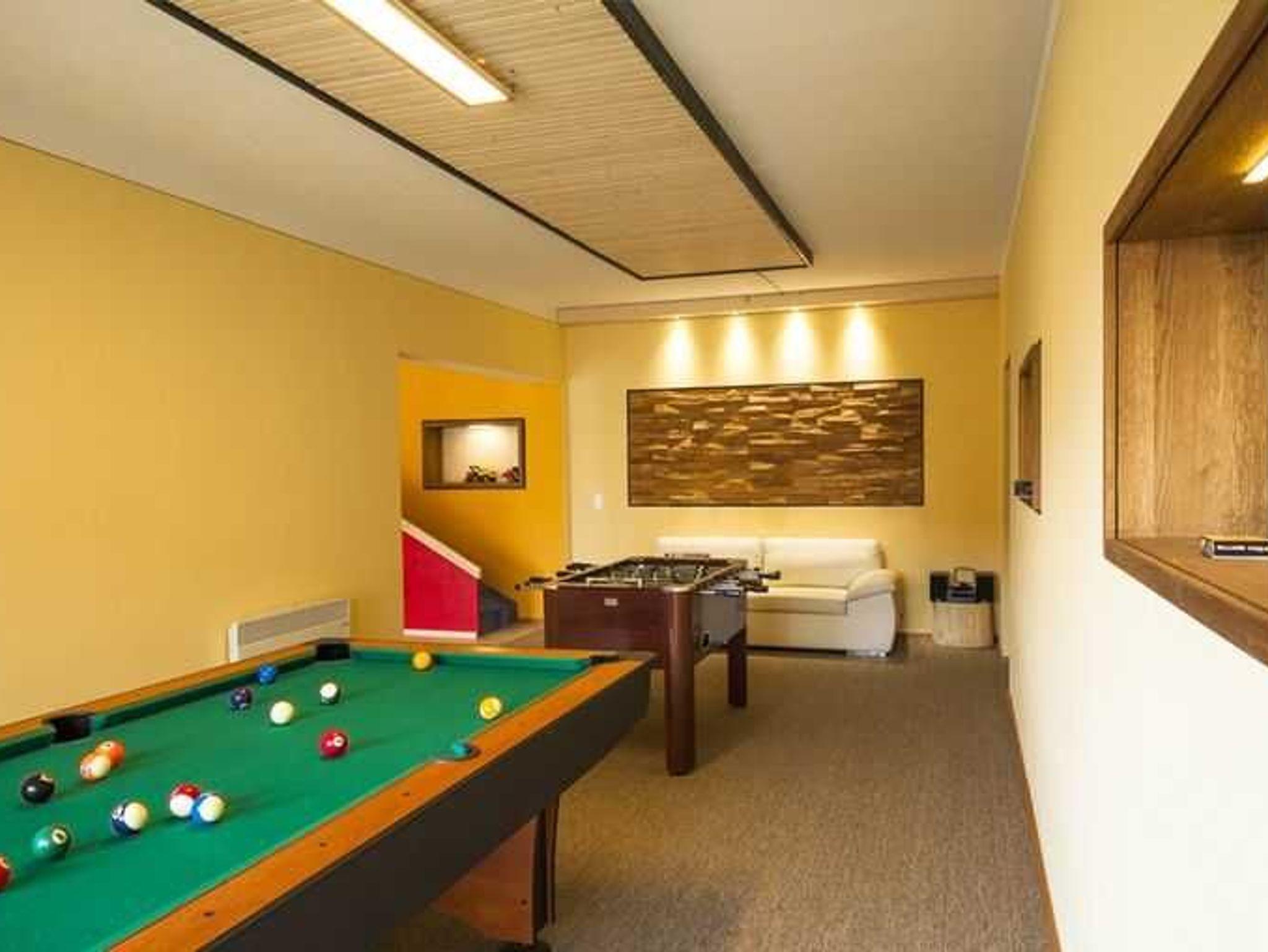Unser Name Familien-Ferien-Wohnung kommt nicht von ungefähr. Zu unserer ohnehin schon sehr familienfreundlichen Ausstattung kam ab 2015 noch ein spezielles Spielzimmer, das sowohl für Kinder als auch Erwachsene nicht nur bei schlechtem Wetter ein toller Ort der Entspannung ist. Hier haben die Kleinen ein riesiges Spielparadies mit Bällebad, Rutsche und jede Menge Spielzeug! Die Großen entspannen in der Zwischenzeit in der Lounge nebenan oder liefern sich packende Billard- und Kickermatches. Im Sommer steht bei schönem Wetter auch ein Pool zur Verfügung.