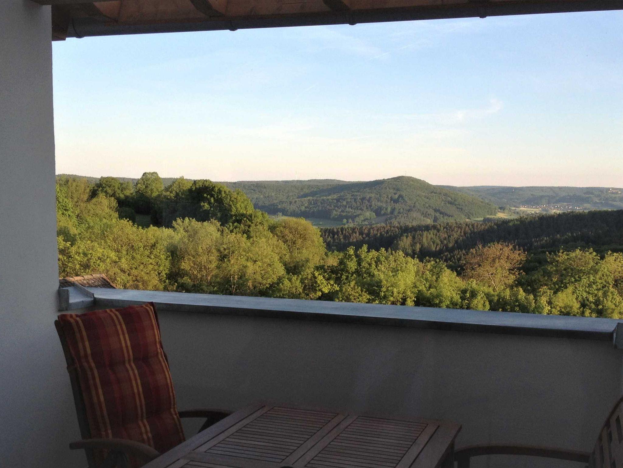 Unsere 4**** Dachgeschosswohnung „Claudia“ ist gemütlich und komfortabel eingerichtet, mit einer voll ausgestatteten Küche, 3 Schlafzimmern, einem offenen Wohn- Essbereich mit großzügigem Tisch und TV, sowie einem Badezimmer. Abends lädt unsere Dachterrasse zum Verweilen ein, während Sie die traumhafte Aussicht auf die Giechburg und dem Gügel genießen können.