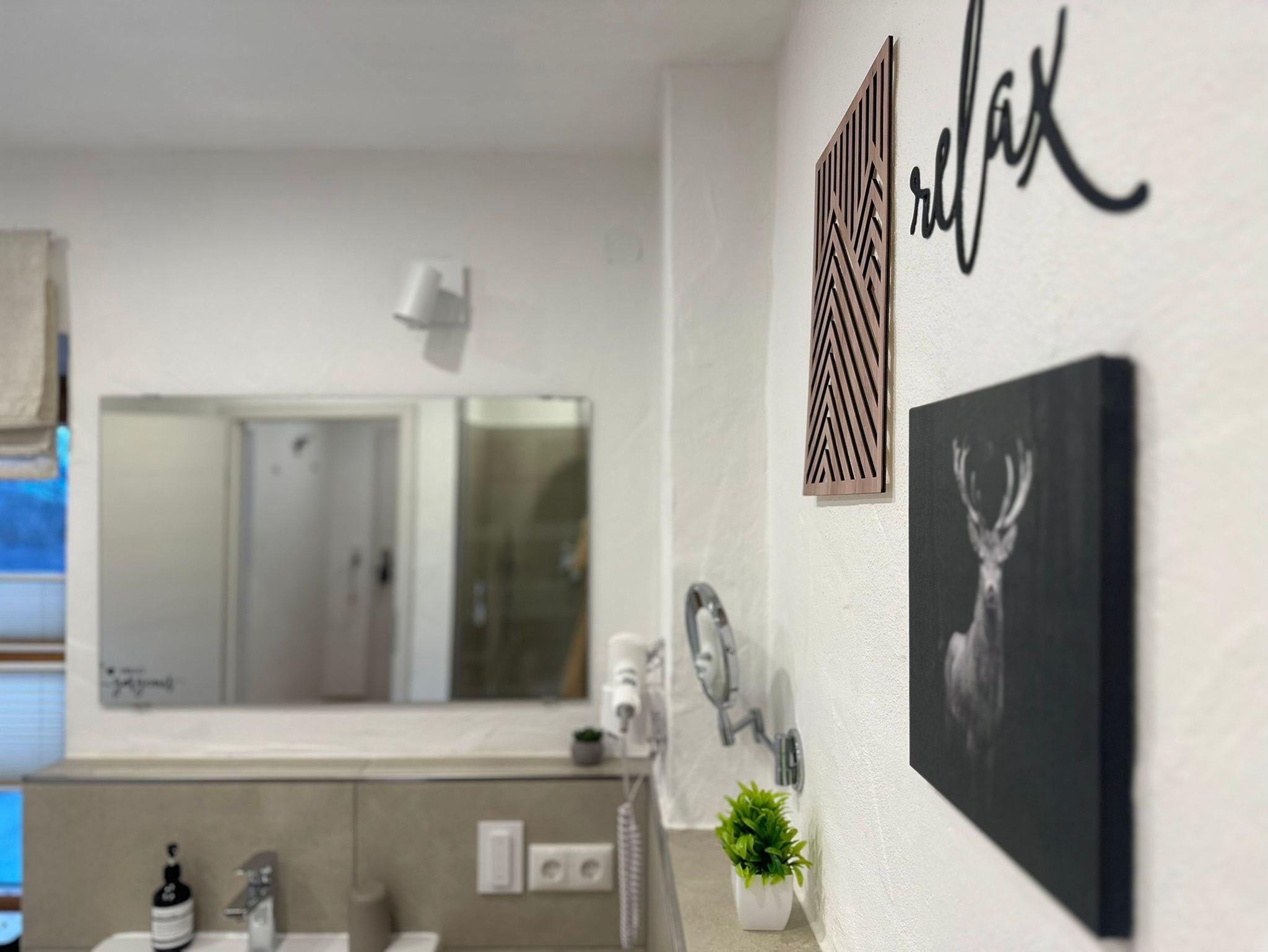 Gemütlich und geräumig (75 qm), ideal für Familien: • Platz für bis zu 5 Gäste • Erdgeschoss mit eigener Frühstücksterrasse • WLAN und Netflix • zwei Schlafzimmer: ein Kingsize-Boxspringbett (180*200 cm) und ein Etagenbett( 2x 90x200 cm) für erholsame Nächte • helles Wohnzimmer mit Schlafsofa (140x200 cm), Smart-TV und gemütlicher Essecke • modernes Bad mit Dusche, Föhn und kostenlosen Pflegeprodukten • Garage inklusive (Beachte bitte die Größe des Garagentores 2,45m (Breite) und 2,04m (Höhe))