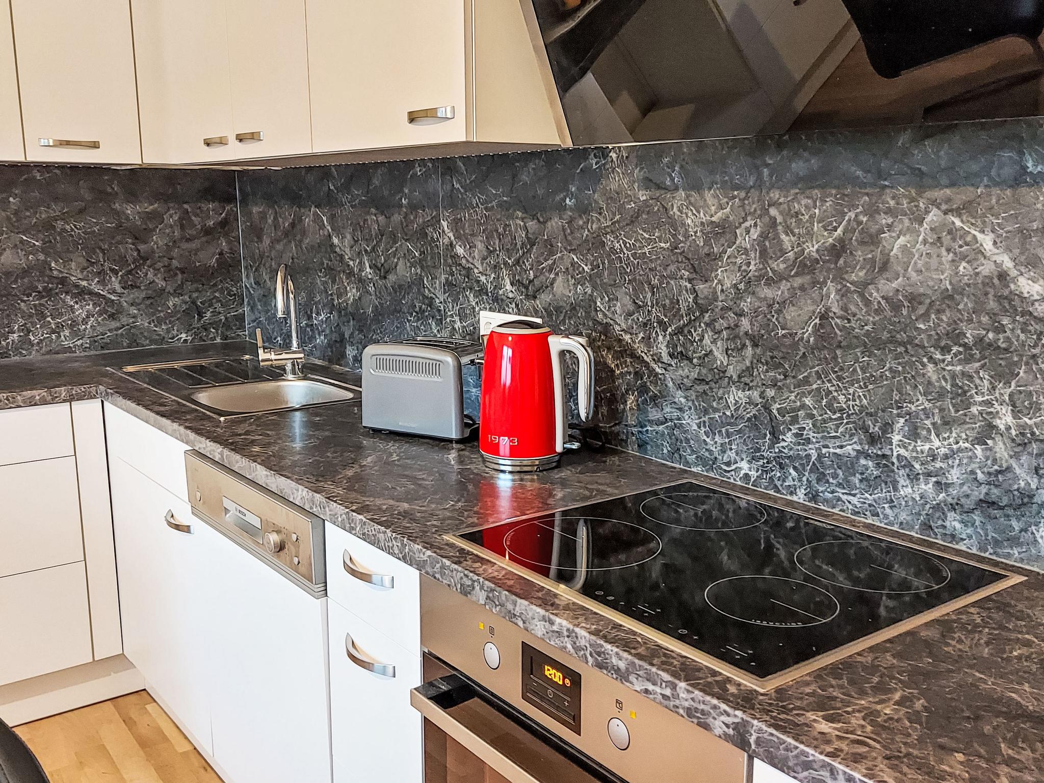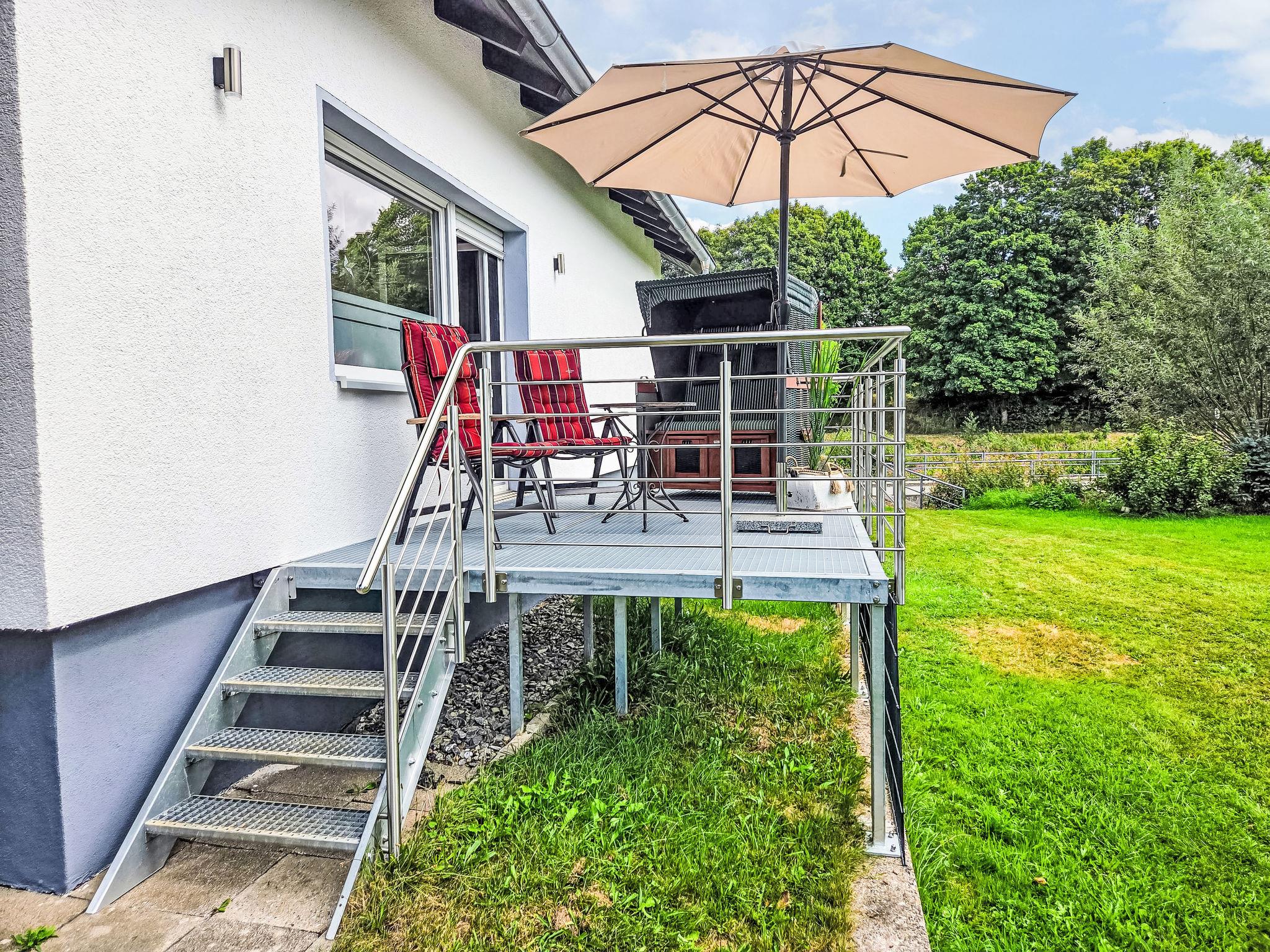 "Lindenstraße", 2-room apartment 75 m2, on the ground floor. Renovated in 2024, modern and cosy furnishings: living/sleeping room with 1 sofabed, satellite TV and flat screen. Exit to the terrace. 1 room with 1 double bed (180 cm, length 200 cm). Large kitchen (oven, dishwasher, 4 induction hot plates, toaster, kettle, microwave, freezer, electric coffee machine) with dining table. Shower/WC, sep. WC. Oil heating. Wooden floors. Terrace 12 m2. Terrace furniture, deck chairs (2). Facilities: children's high chair, baby cot. Internet (WiFi, free). Parking (roofed) at the house. Please note: non-smokers only. Smoke alarm, fire extinguisher.