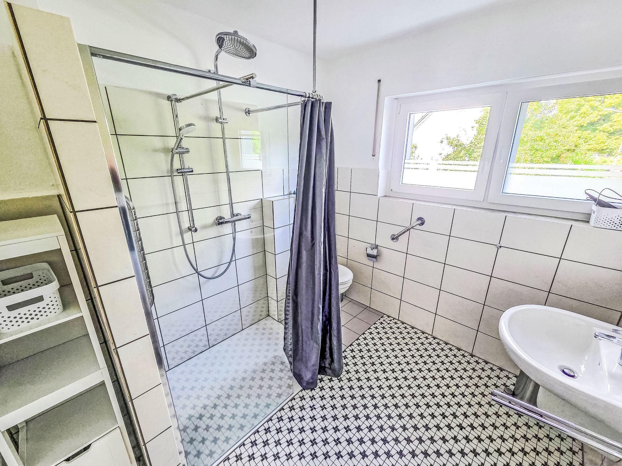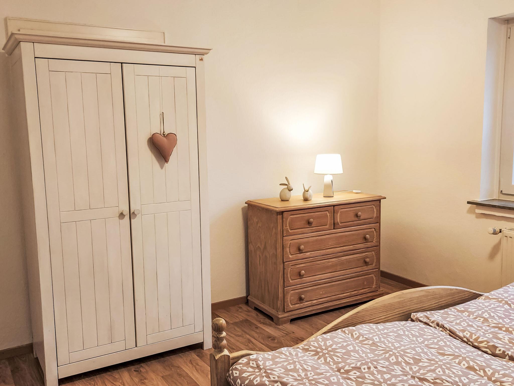 "Lindenstraße", 4-room house 130 m2 on 2 levels. Renovated in 2024, modern and cosy furnishings: living/sleeping room with 1 sofabed, satellite TV and flat screen. Exit to the terrace. 1 room with 1 double bed (180 cm, length 200 cm). Large kitchen (oven, dishwasher, 4 induction hot plates, toaster, kettle, microwave, freezer, electric coffee machine) with dining table. Shower/WC, sep. WC. Top floor: living/dining room with sloping ceilings with satellite TV and flat screen. Exit to the balcony. 1 room with 1 double bed. Kitchenette (2 hot plates, toaster, kettle, microwave, electric coffee machine). Shower/WC. Oil heating. Wooden floors. Balcony, terrace 12 m2. Terrace furniture, balcony furniture, deck chairs (4). Facilities: children's high chair, baby cot, hair dryer. Internet (WiFi, free). Parking (roofed) at the house. Please note: non-smoking house. Smoke alarm, fire extinguisher. No internal connecting door between the separated properties. If you book the whole house, you have exclusive use of the garden.